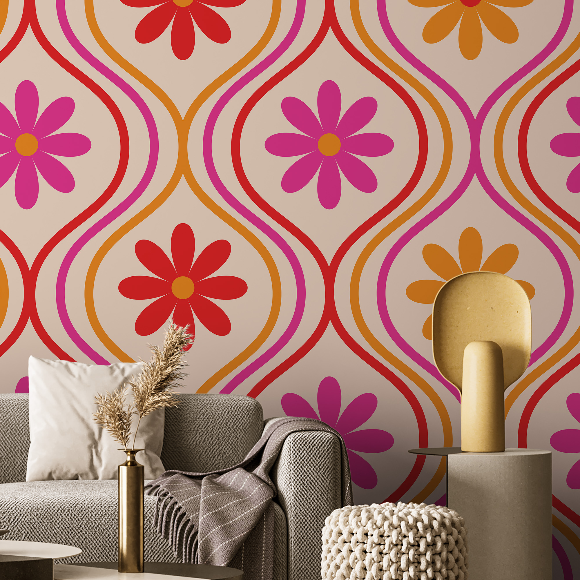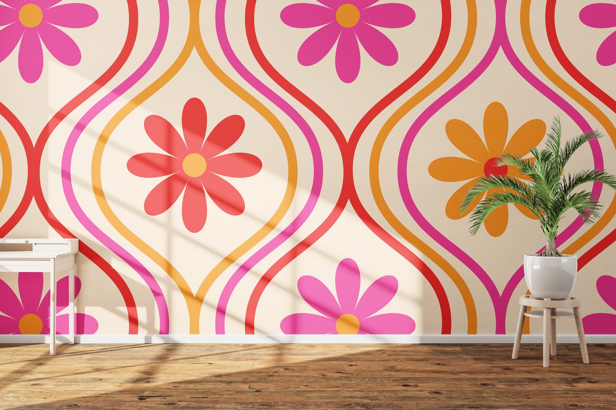 Oval Desenli Fonda Çiçekler Duvar Kağıdı üretimi , uygulanmasını isteyeceğiniz boyut ve konumuna uygun olarak talepleriniz doğrultusunda size özel imal edilir.