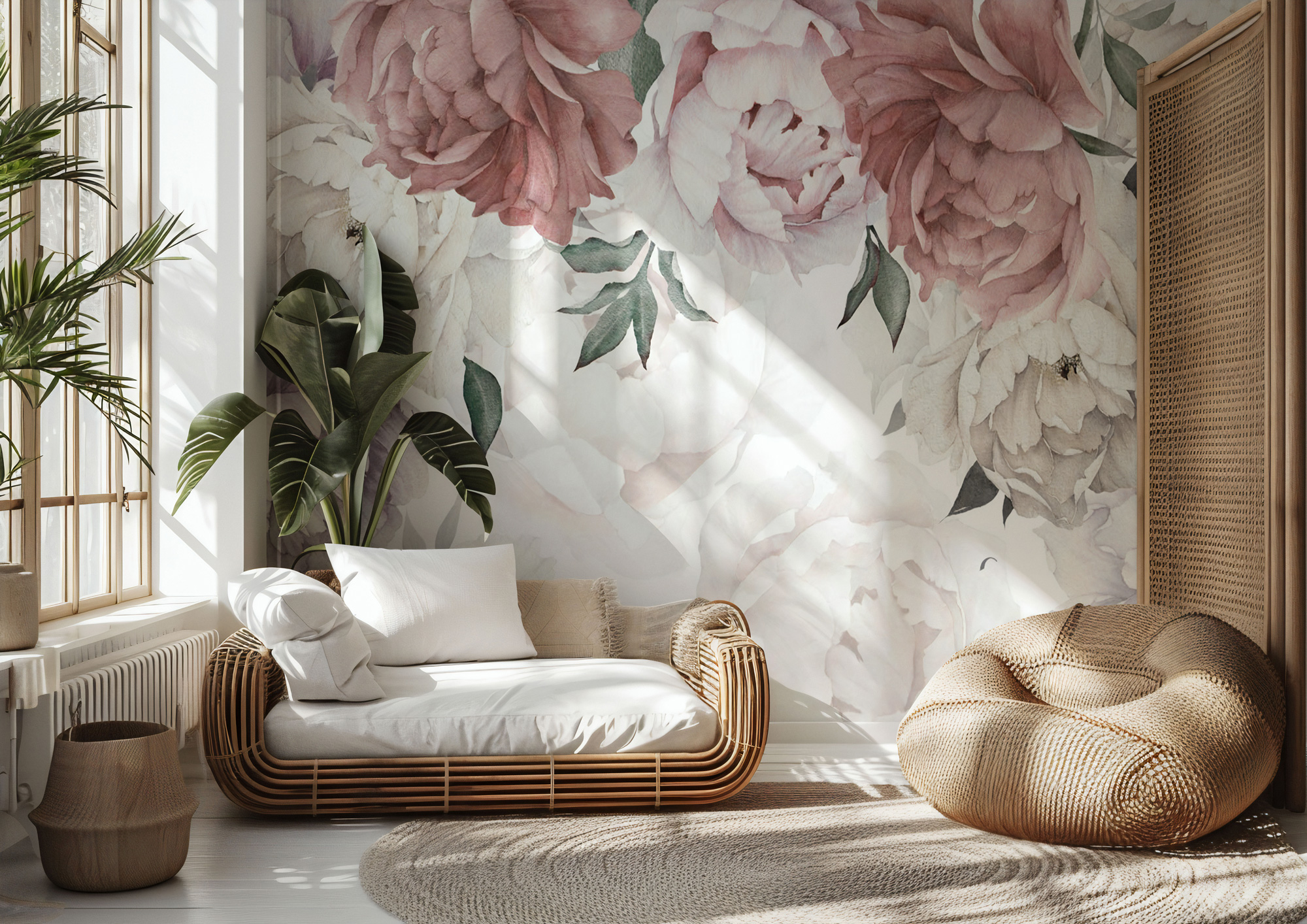 Pembe Mor Beyaz Güller Duvar Kağıdı , uygulanmasını isteyeceğiniz boyut ve konumuna uygun olarak talepleriniz doğrultusunda size özel imal edilir.