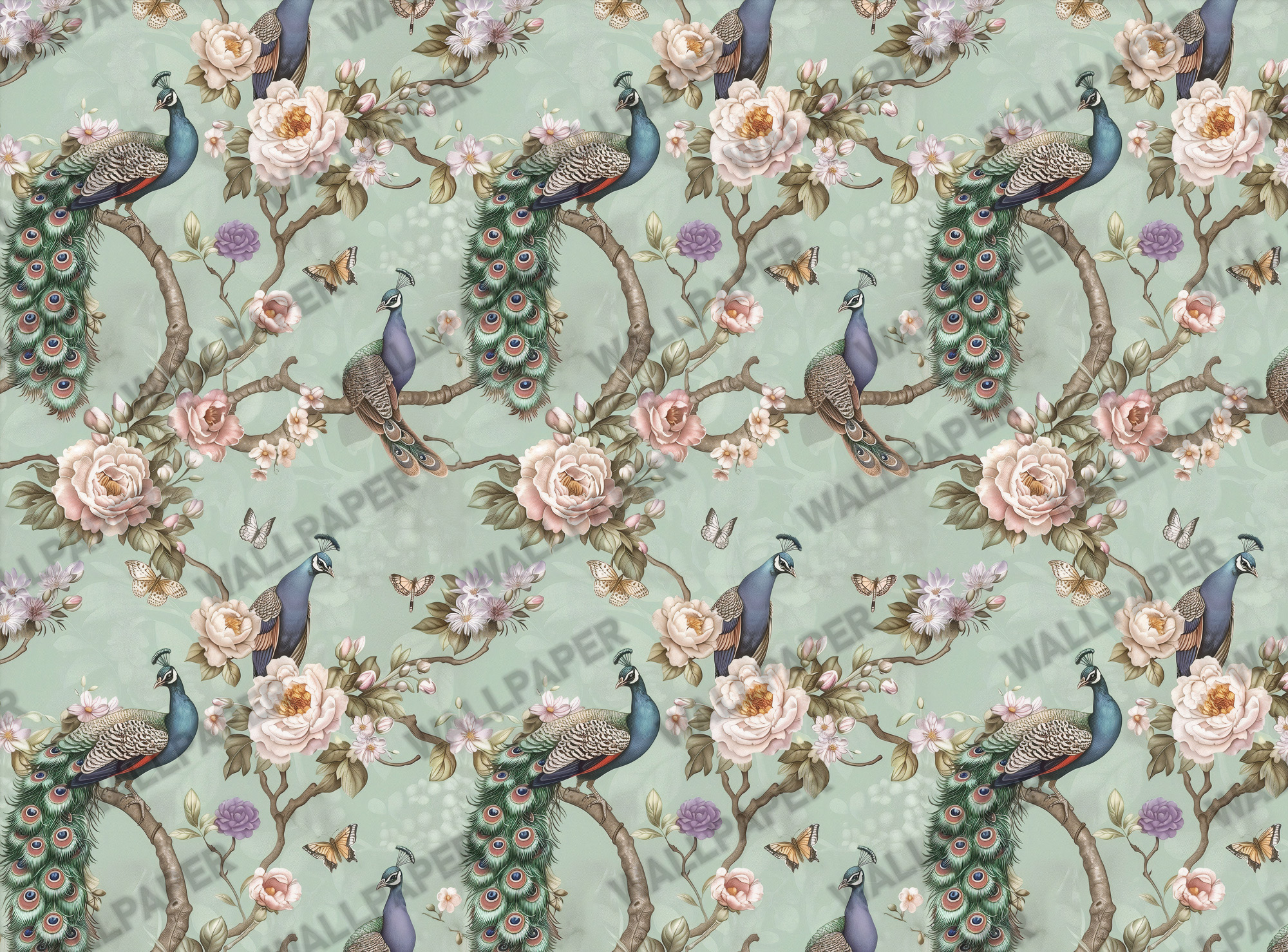 Romantik Tavus Kuşu ve Çiçek Duvar Kağıdı Ürün Bilgisi