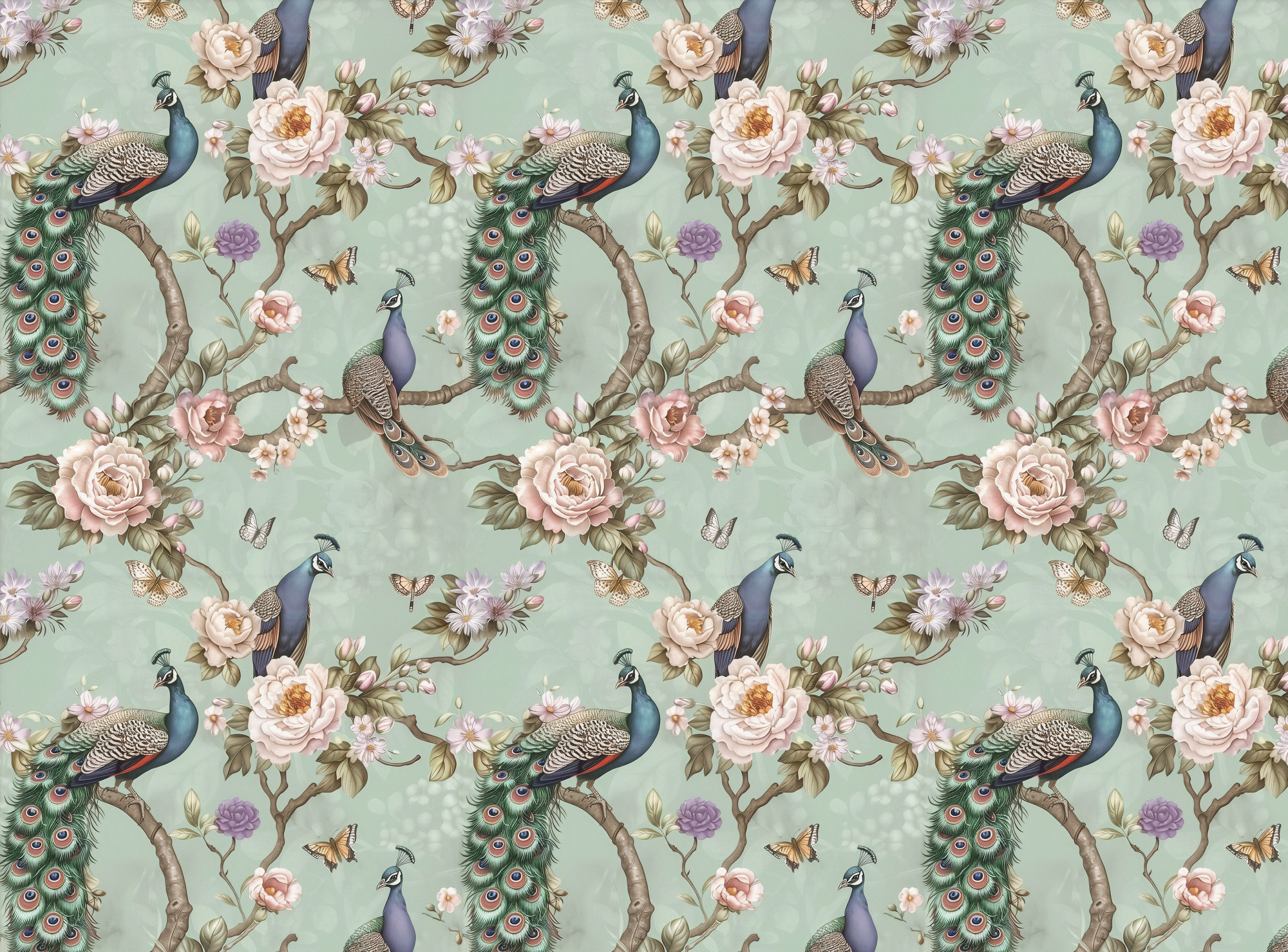 Romantik Tavus Kuşu ve Çiçek Duvar Kağıdı üretimi, uygulanmasını isteyeceğiniz boyut ve konumuna uygun olarak talepleriniz doğrultusunda size özel imal edilir.