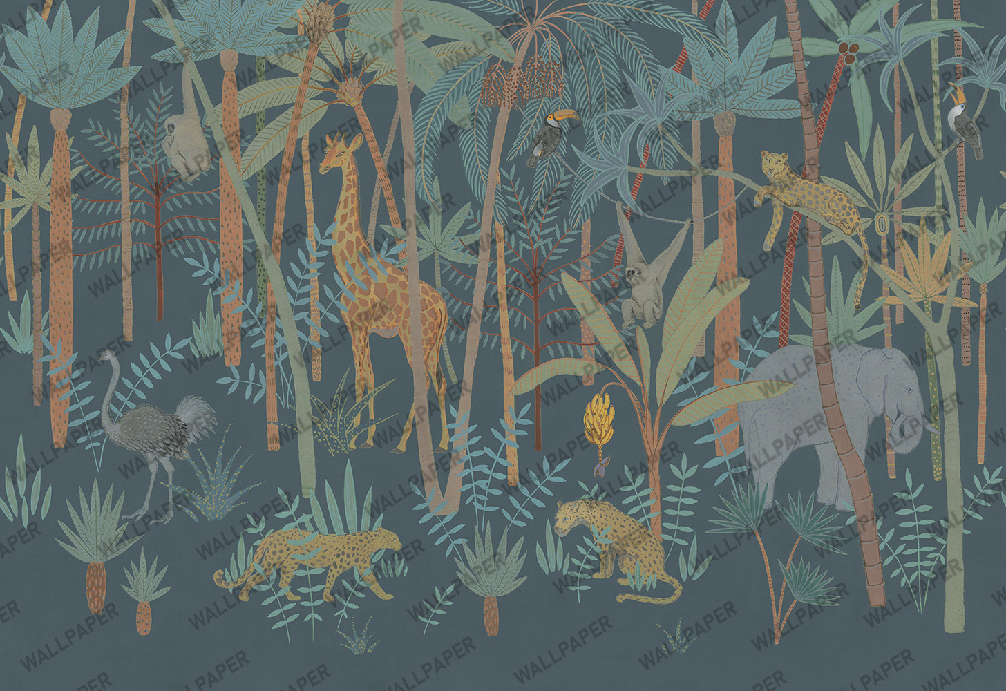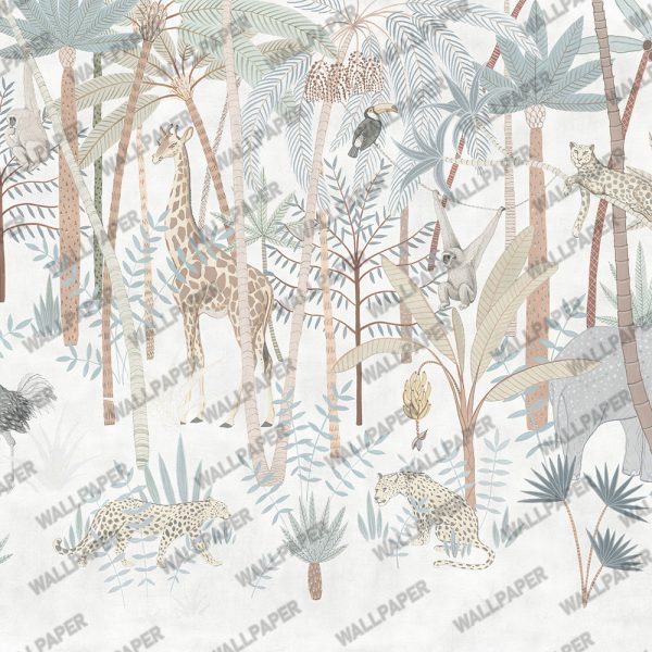 Safari ve Tropikal Desenli Çocuk Odası Duvar Kağıdı üretimi, uygulanmasını isteyeceğiniz boyut ve konumuna uygun olarak talepleriniz doğrultusunda size özel imal edilir.