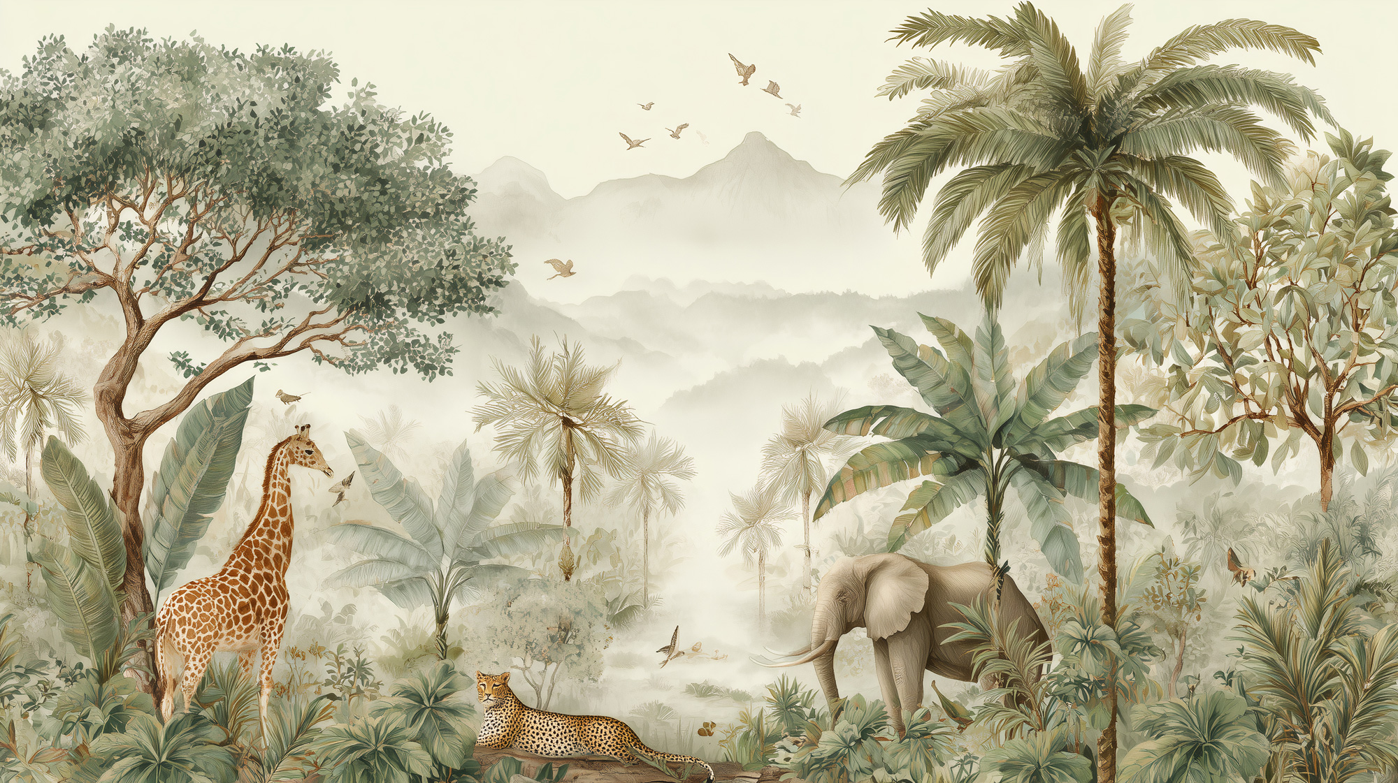 Sisli Tropikal Orman ve Hayvanlar Duvar Kağıdı Ürün Bilgisi