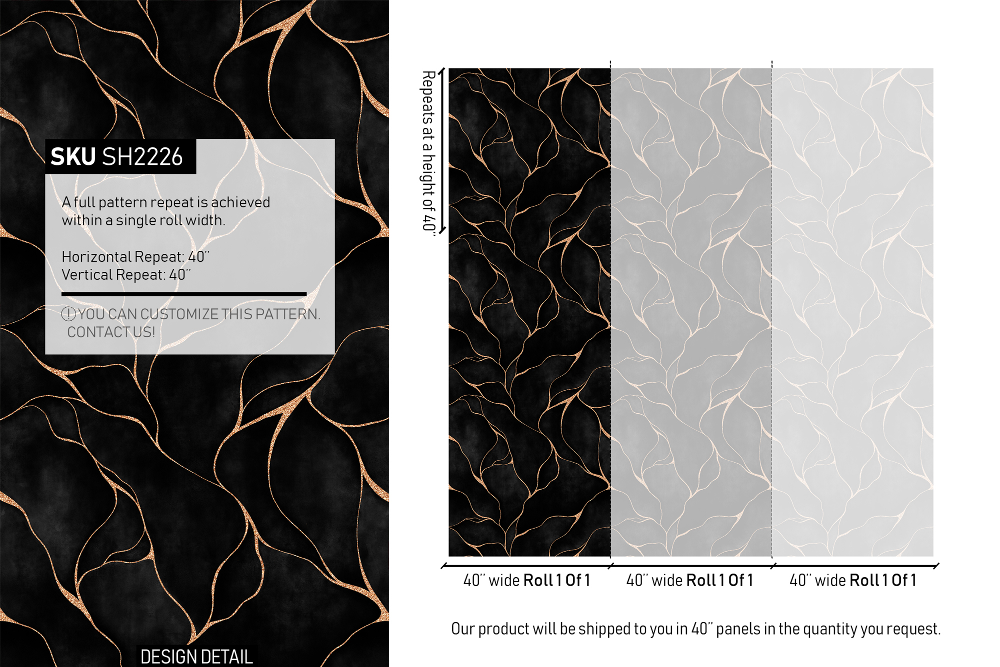 Siyah Altın Damarlı Duvar Kağıdı üretimi, uygulanmasını isteyeceğiniz boyut ve konumuna uygun olarak talepleriniz doğrultusunda size özel imal edilir.