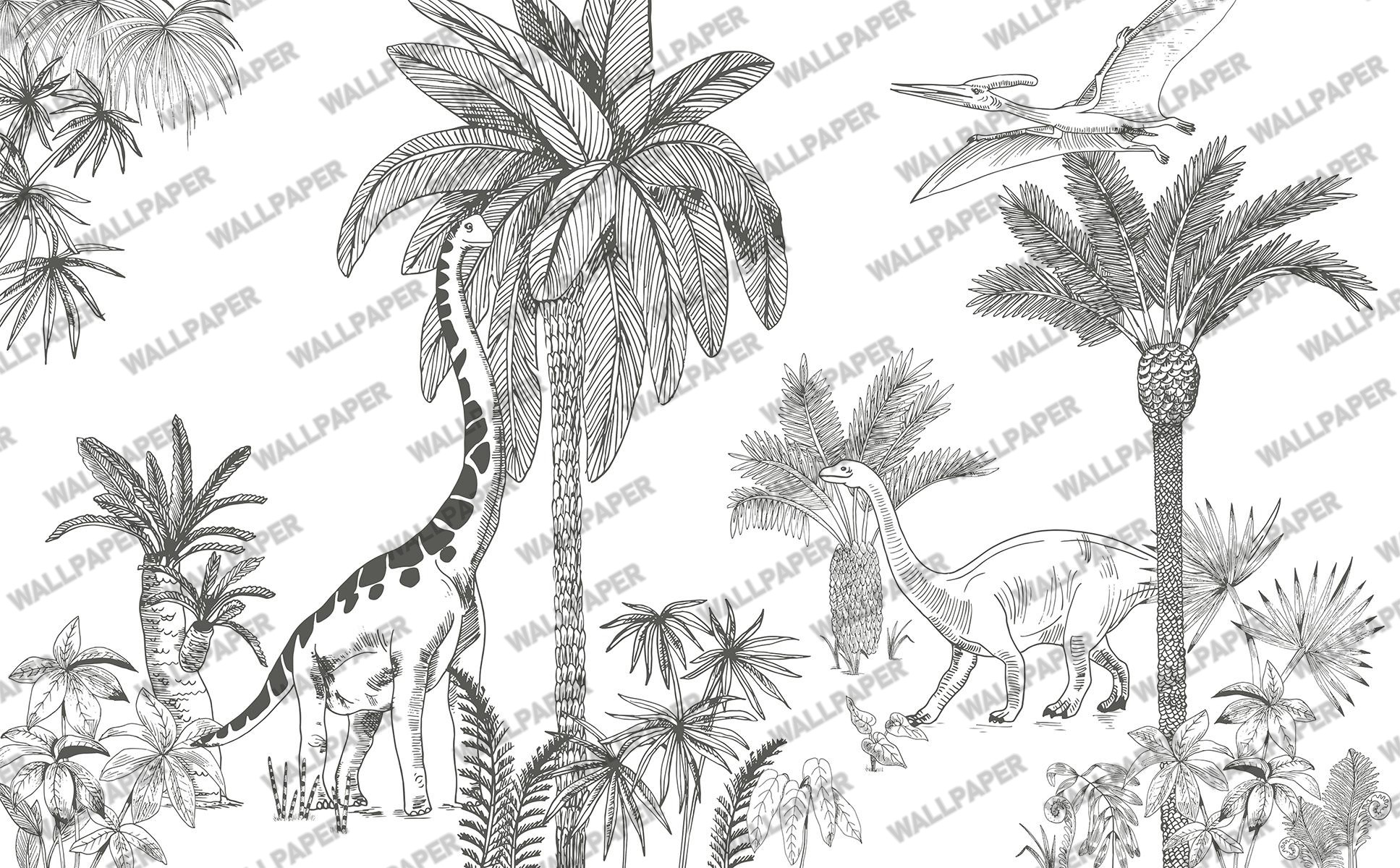 Siyah Beyaz Safari Dinazorlu 3D Duvar Kağıdı, en yüksek kalitede (high pass) detay zenginliği gözetilerek, en doğru renklerde ürünün üretimi sağlanır.