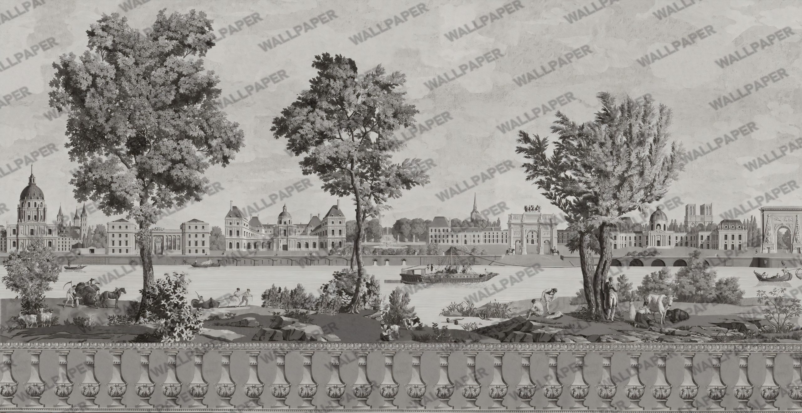 Siyah Beyaz Manzaralı Tropikal Desenli 3D Duvar Kağıdı Ürün Bilgisi