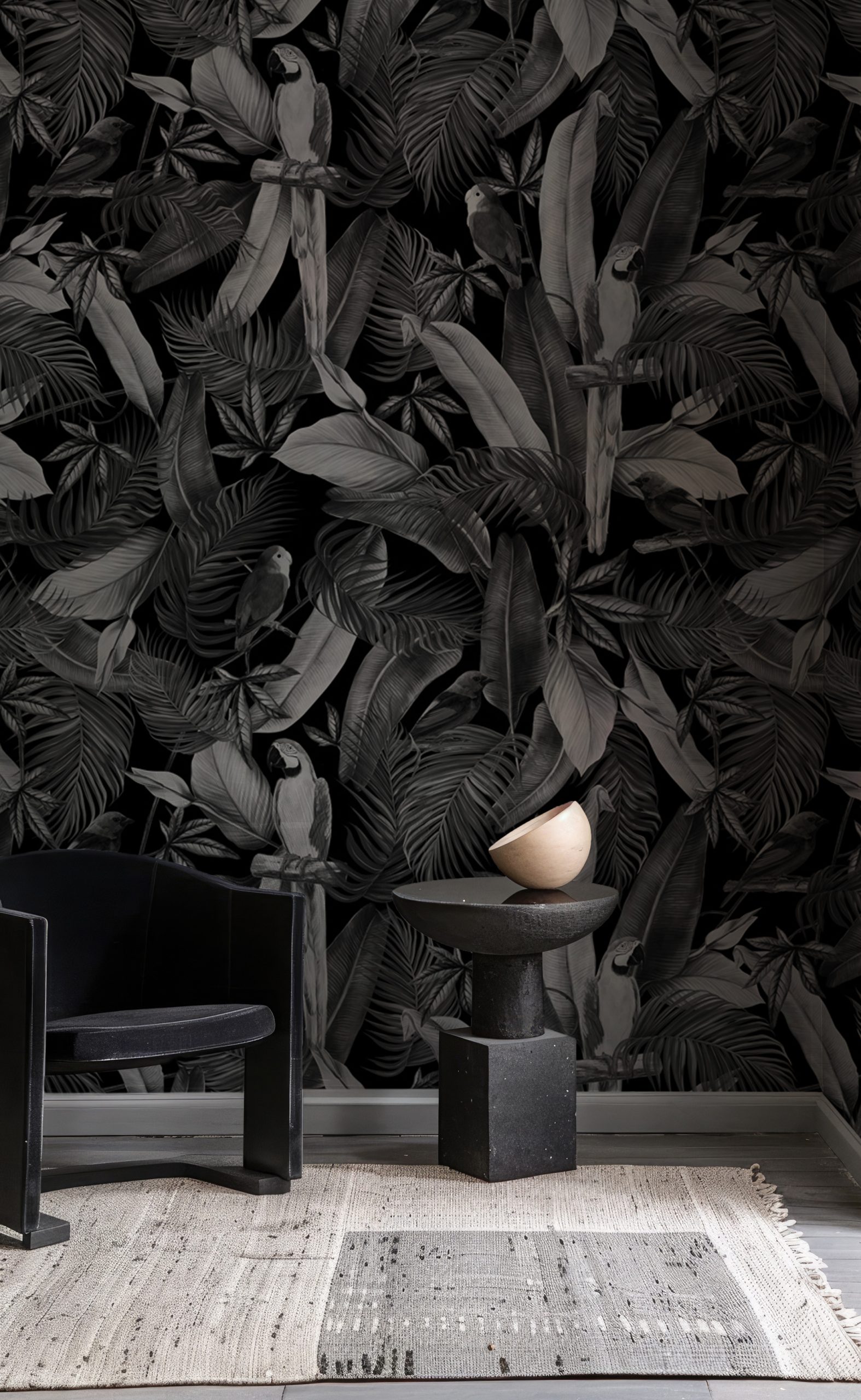 Siyah Beyaz Papağan Tropikal Duvar Kağıdı Ürün Bilgisi