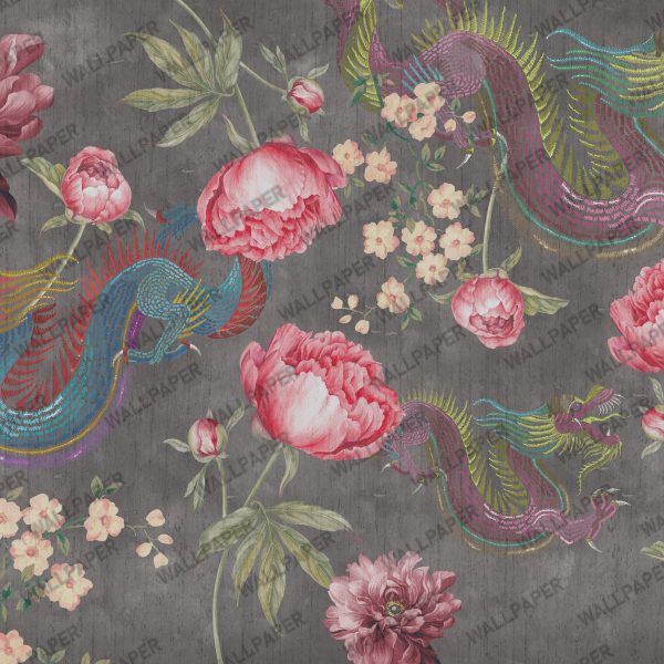 Siyah Sarılı Eskitmeli Çiçek Desenli 3D Duvar Kağıdı