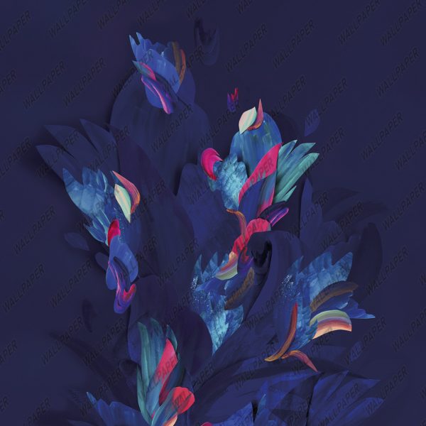 Lacivert Renginden Çiçek Desenli 3D Duvar Kağıdı