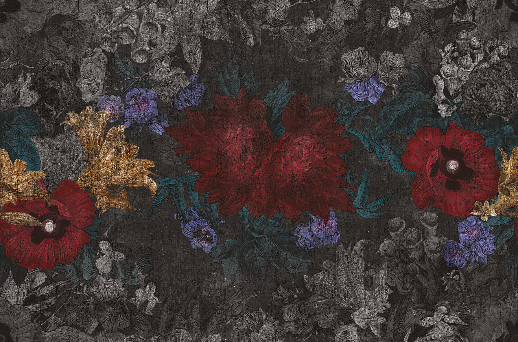 Siyah Sarılı Eskitmeli Çiçek Desenli 3D Duvar Kağıdı, en yüksek kalitede (high pass) detay zenginliği gözetilerek, en doğru renklerde ürünün üretimi sağlanır.