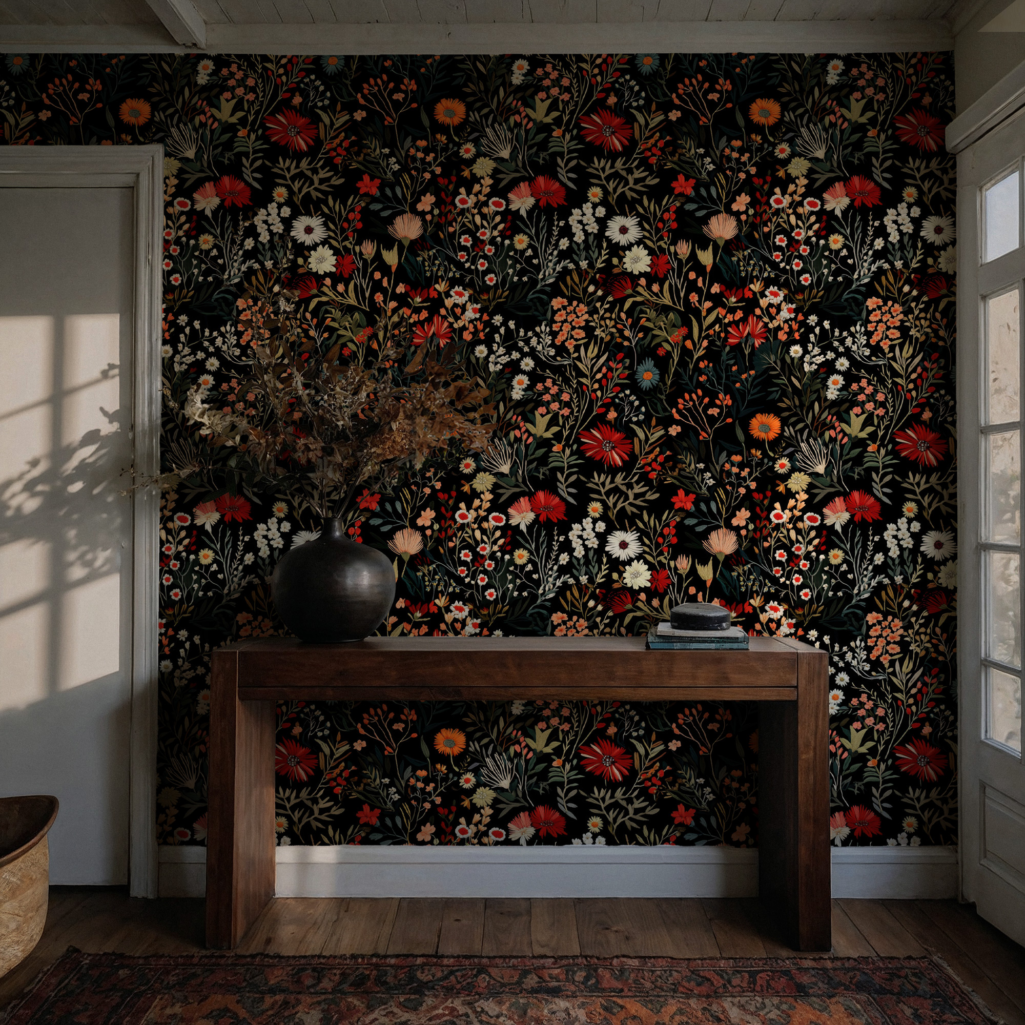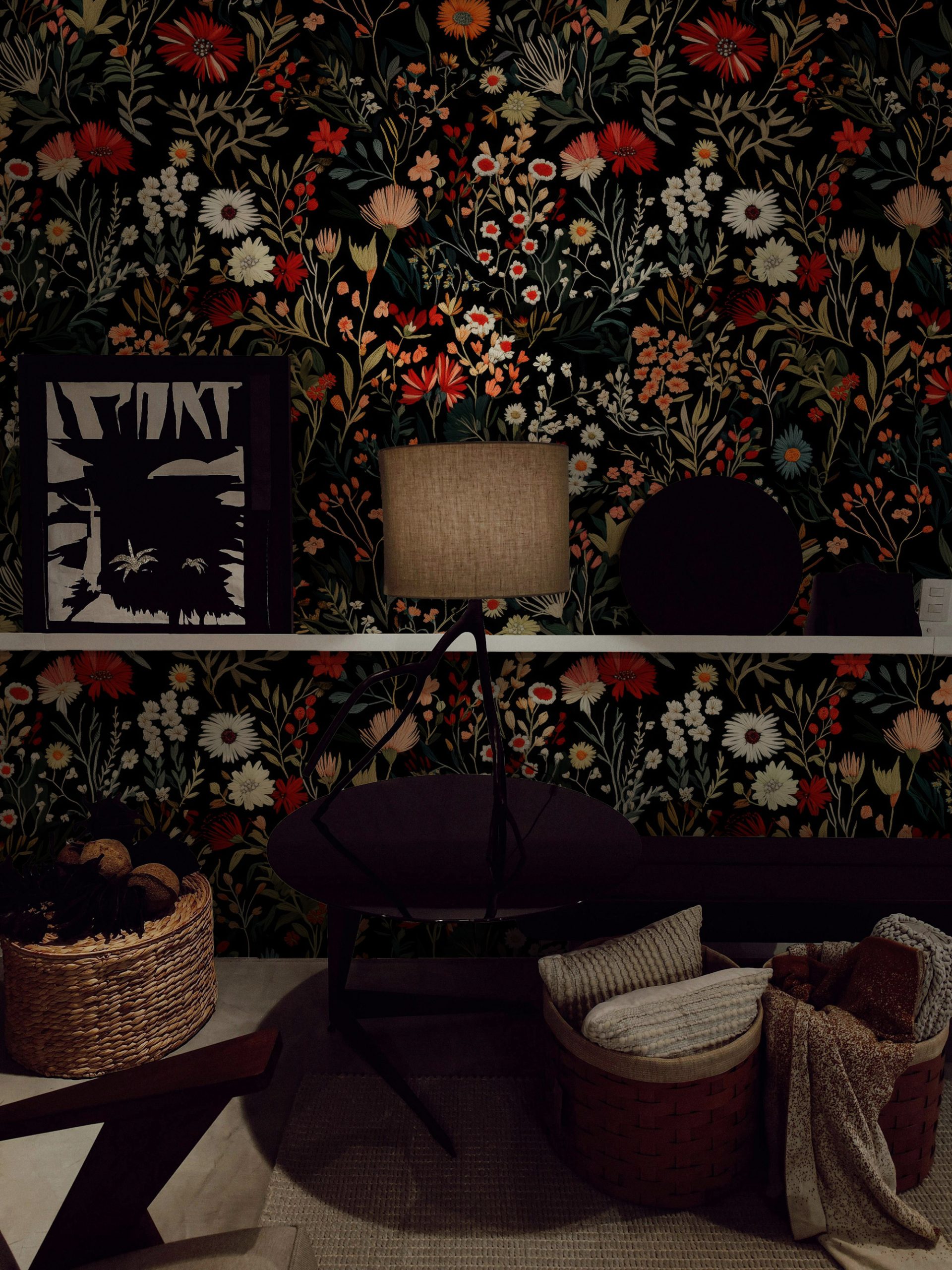 Siyah Zemin Çiçek Desenli Duvar Kağıdı Ürün Bilgisi