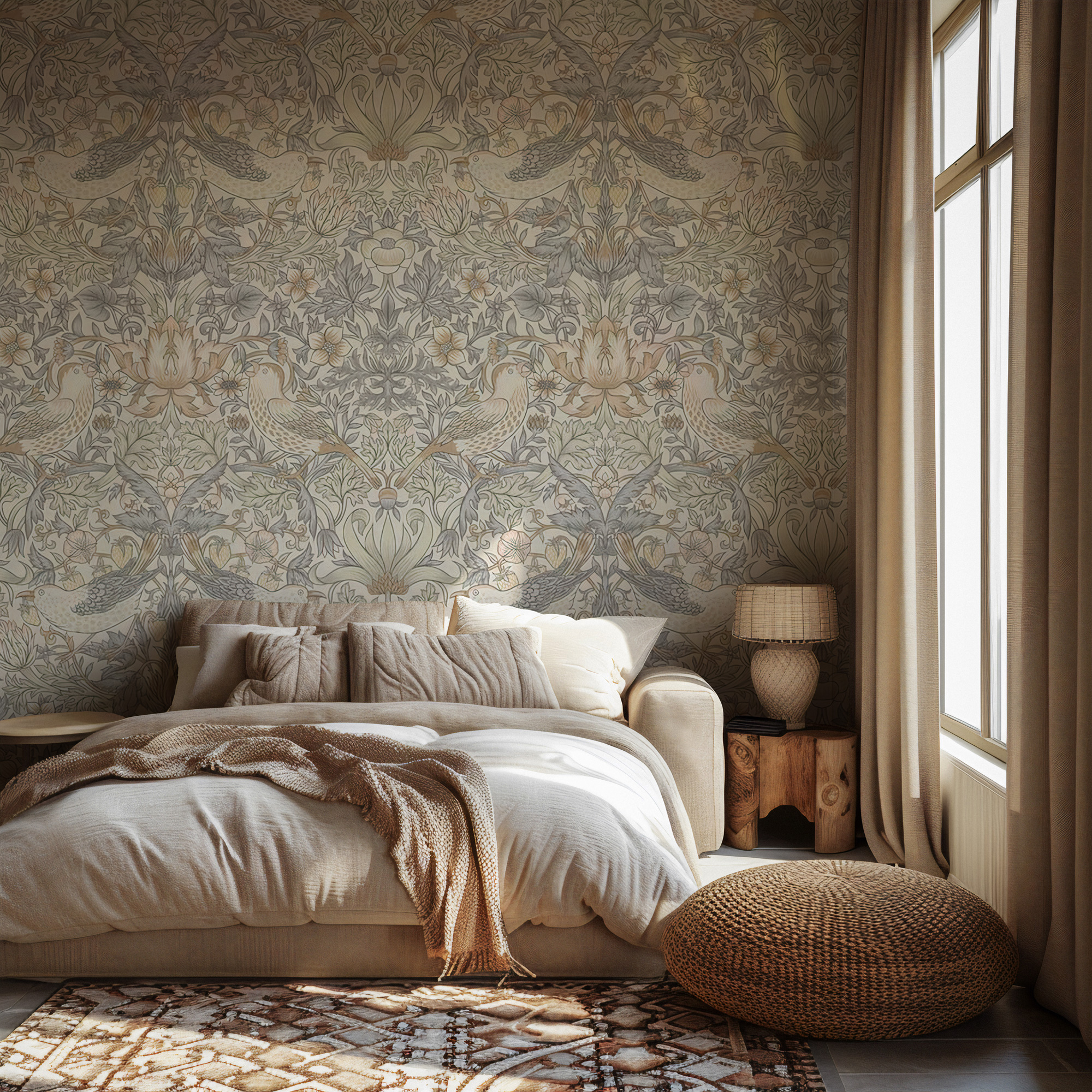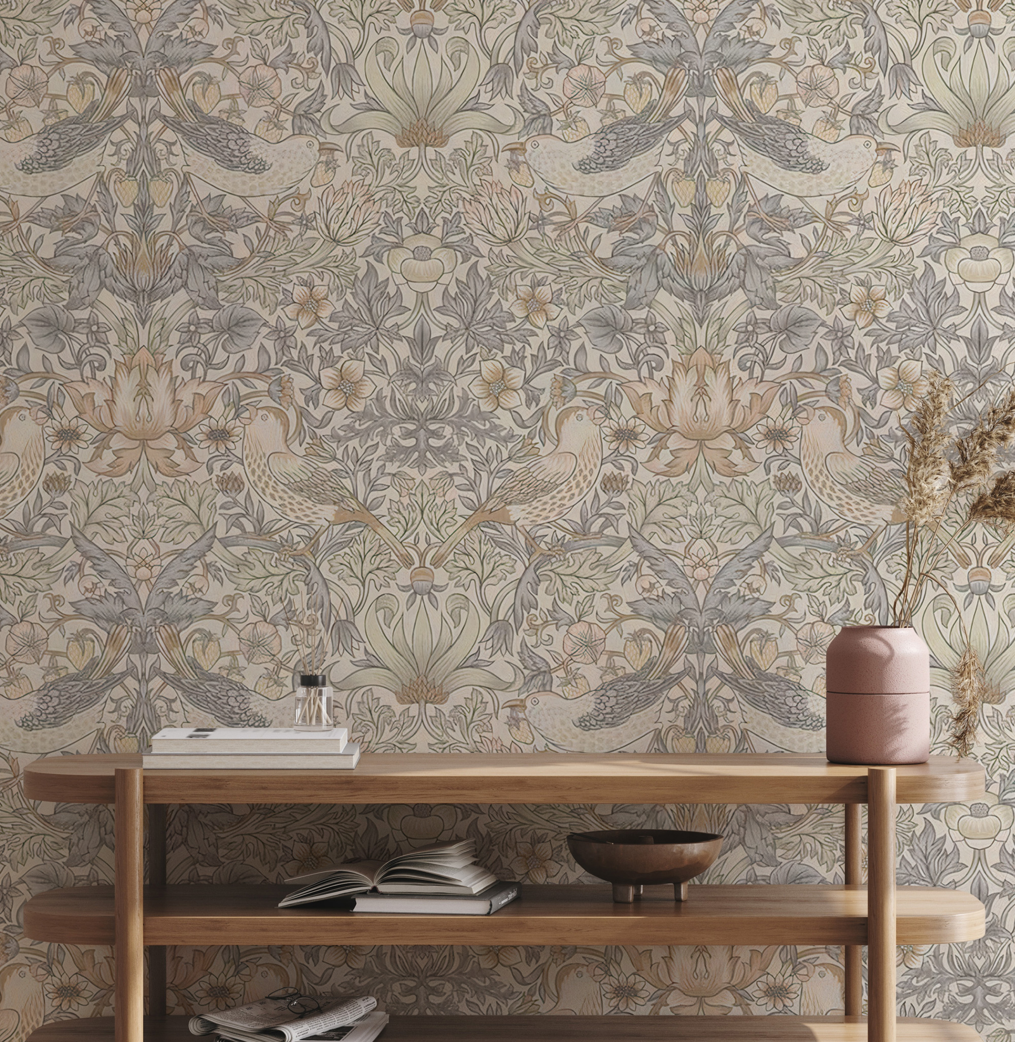 Soft Kuş ve Çiçek Desenli Vintage Duvar Kağıdı Ürün Bilgisi