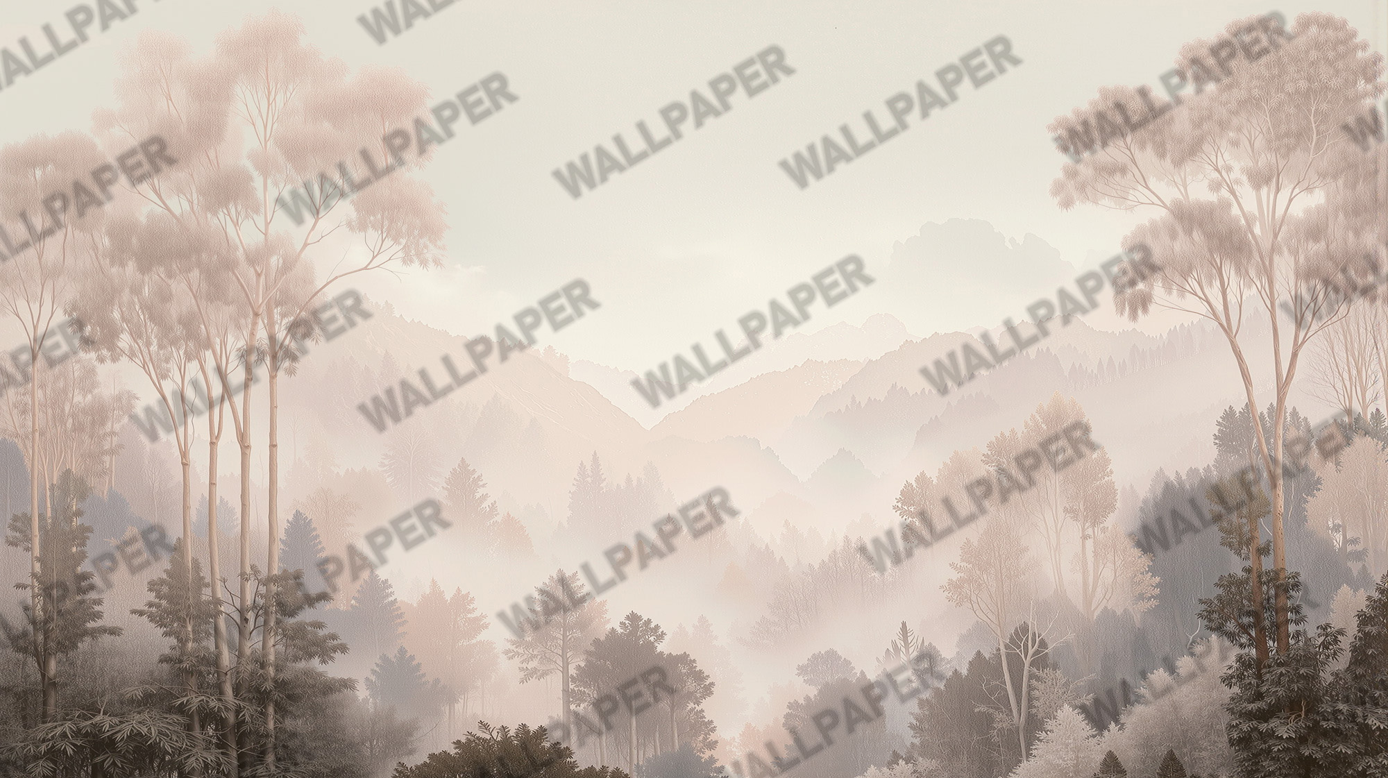 Soft Tonlarda Sisli Orman Duvar Kağıdı