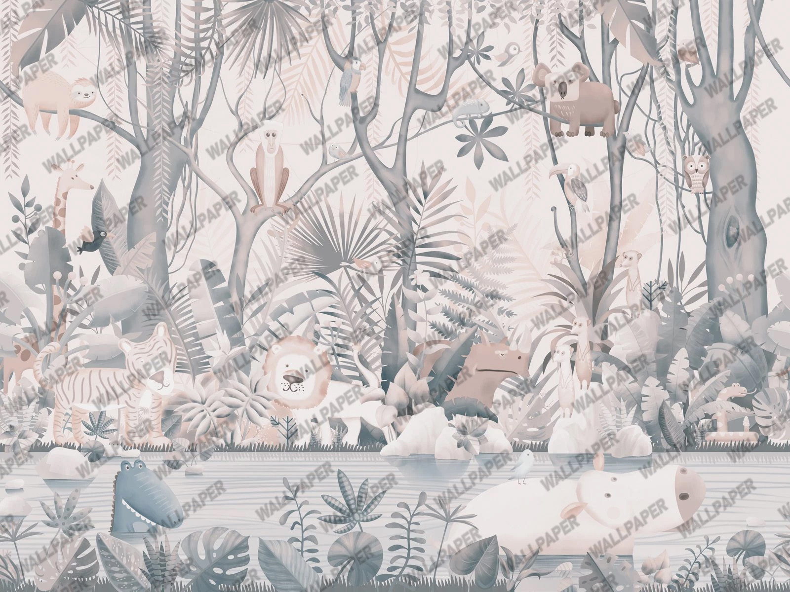 Soft Tropikal Ormanda Sevimli Hayvanlar Duvar Kağıdı , en yüksek kalitede (high pass) detay zenginliği gözetilerek, en doğru renklerde ürünün üretimi sağlanır.