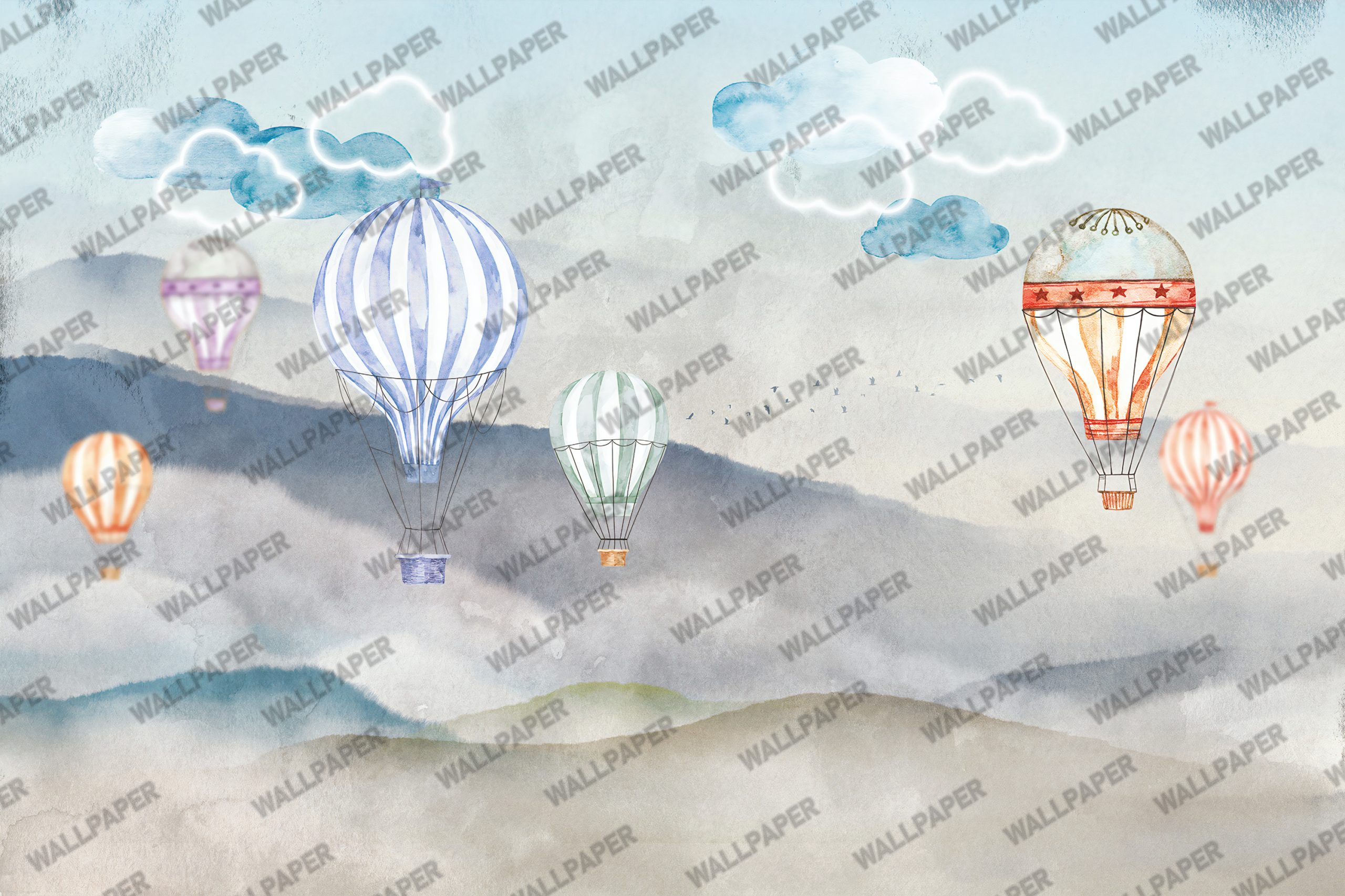 - Sulu Boya Efekti Balonlar Çocuk Odası 3D Duvar Kağıdı, 100-105cm genişliğinde parçalar halinde üretilmektedir.