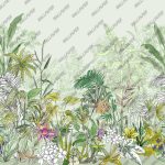 - Sulu Boya Tarzında Göl Kenarındaki Tropikal Çiçekler Duvar Kağıdı, 100-105cm genişliğinde parçalar halinde üretilmektedir.