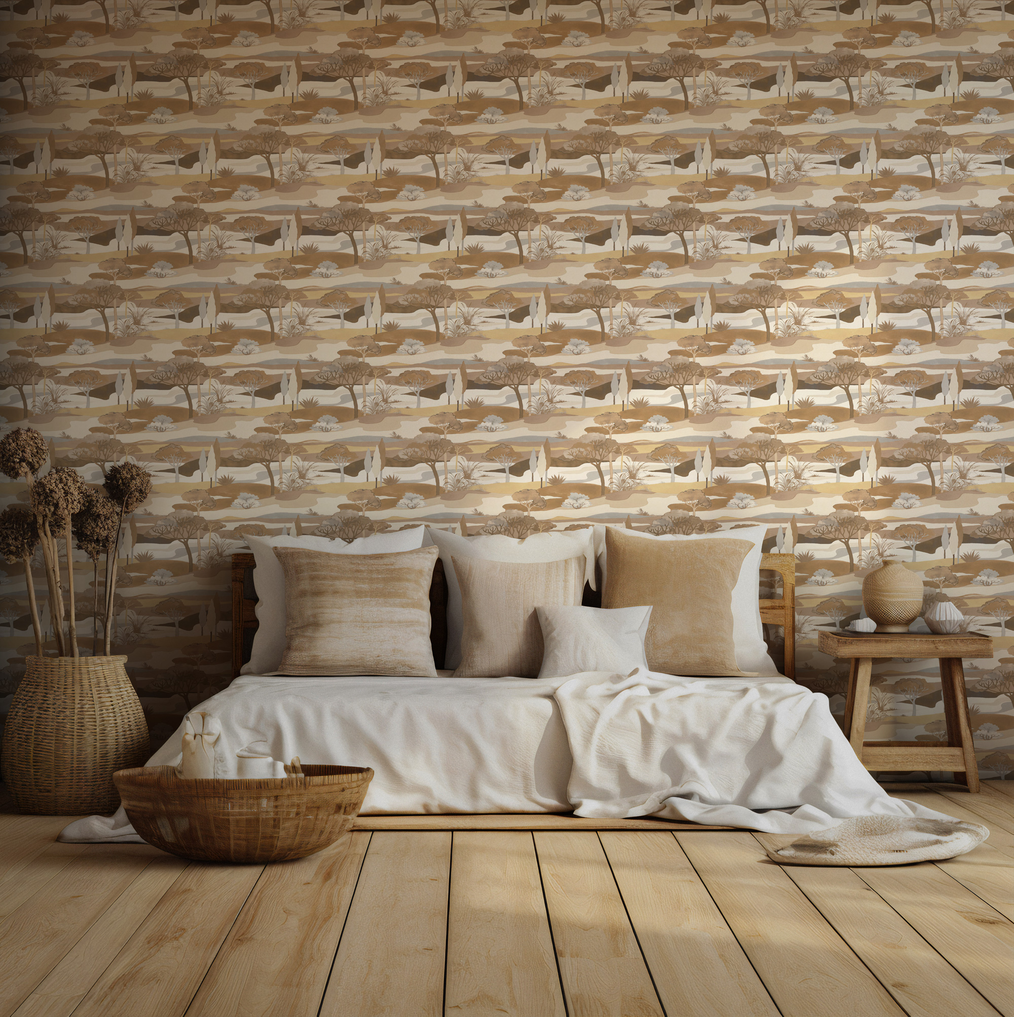 - Toprak Tonları Vadi Duvar Kağıdı , 100-105cm genişliğinde parçalar halinde üretilmektedir.