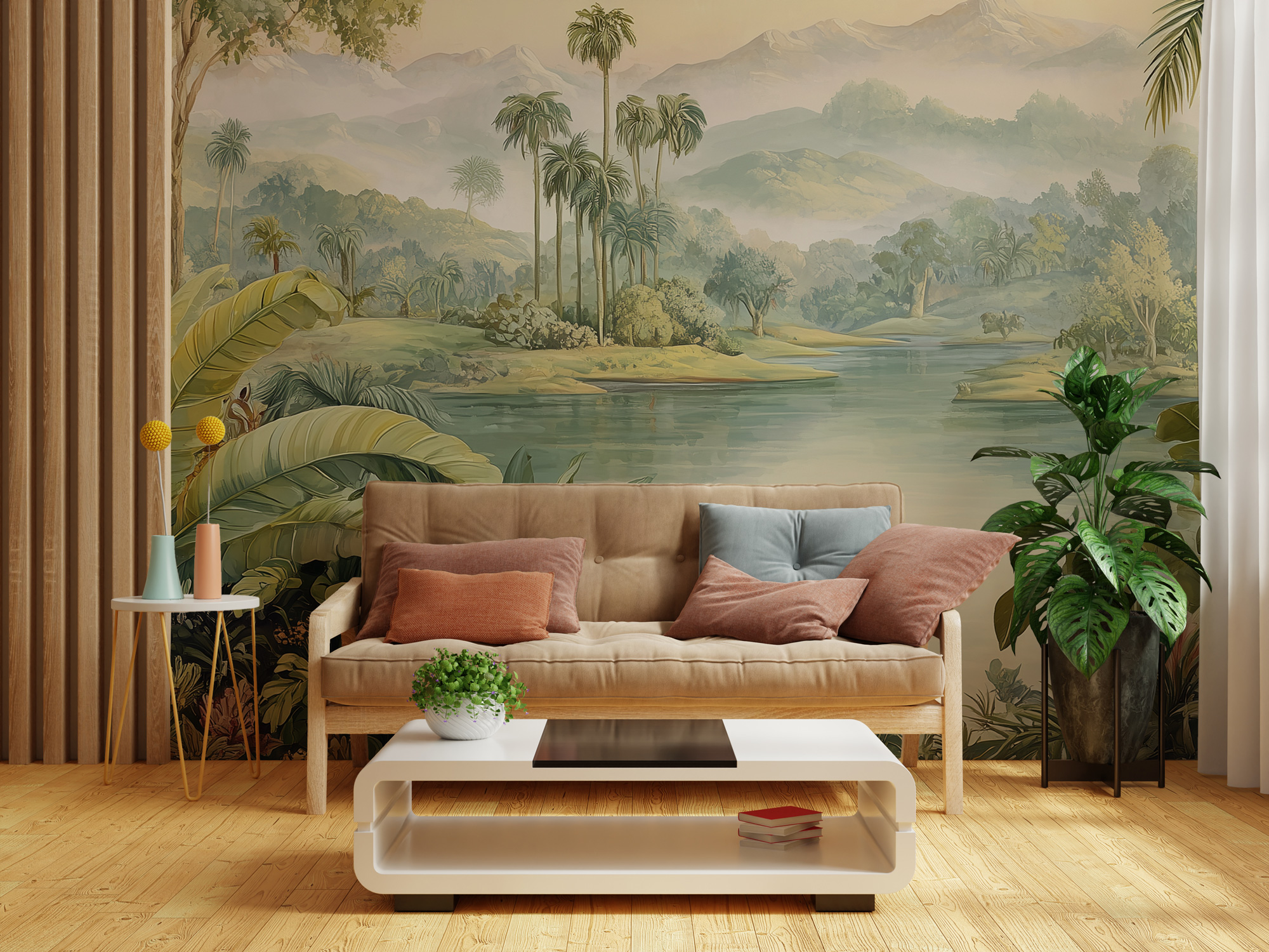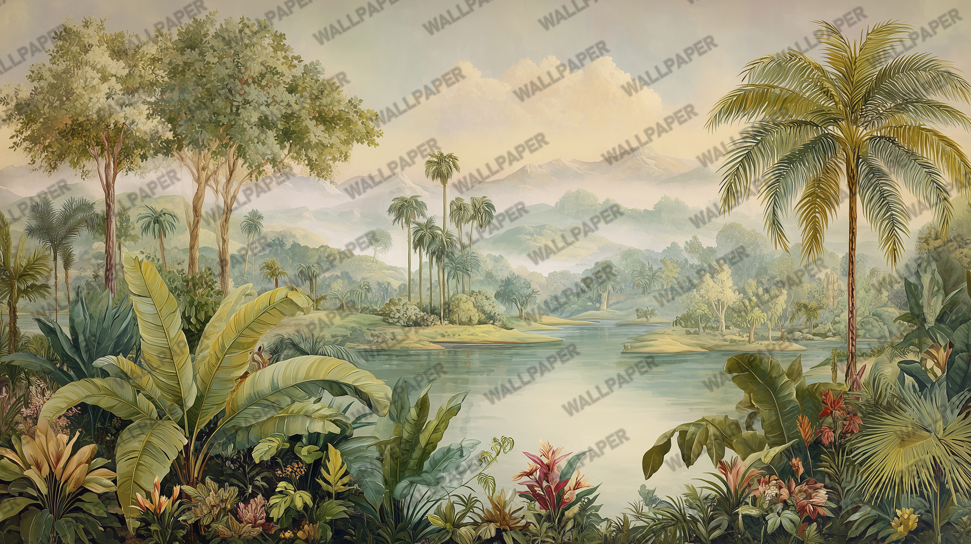 Tropikal Göl Manzaralı Botanik Duvar Kağıdı Ürün Bilgisi