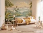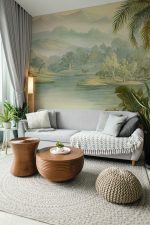 - Tropikal Göl Manzaralı Botanik Duvar Kağıdı , 100-105cm genişliğinde parçalar halinde üretilmektedir.
