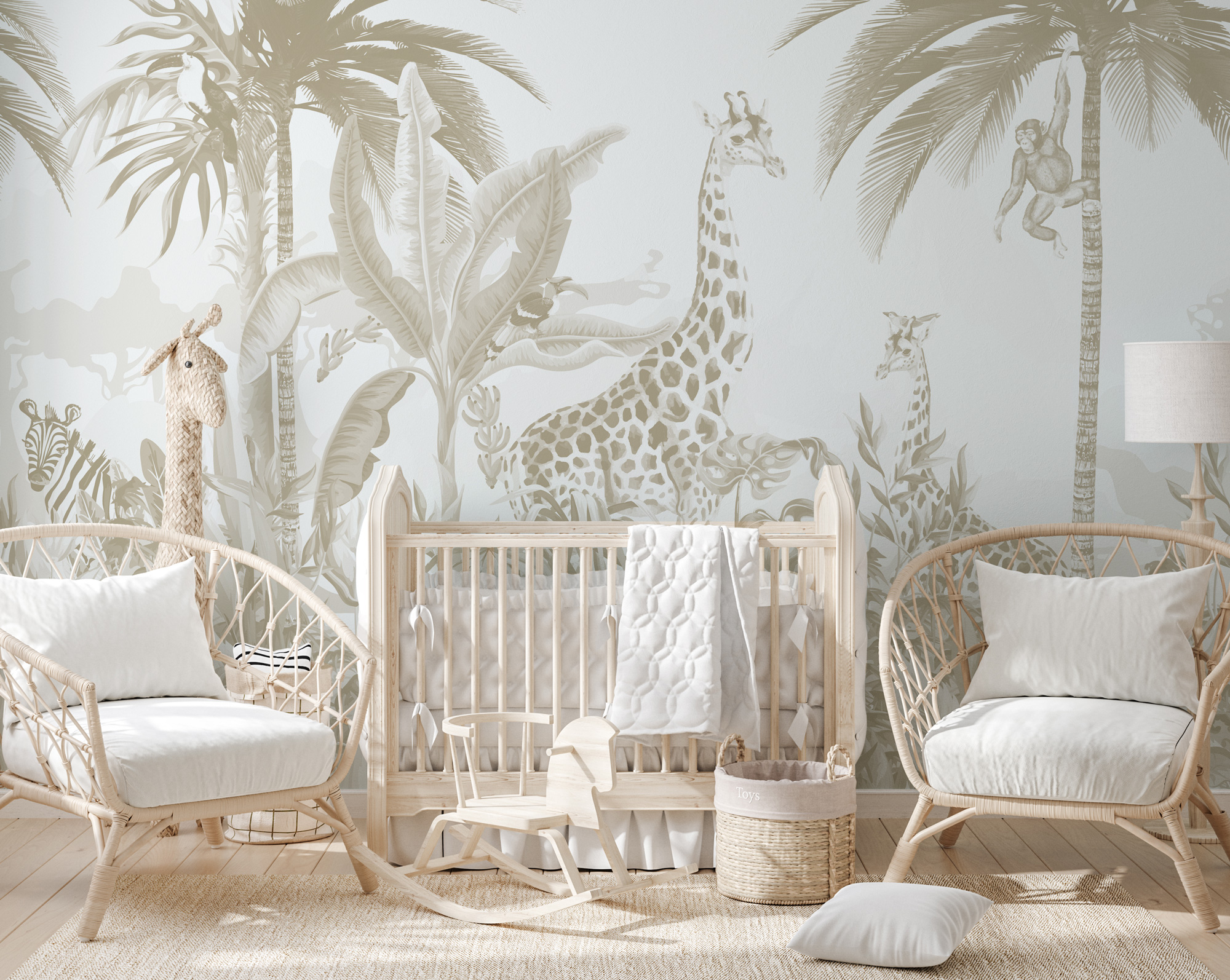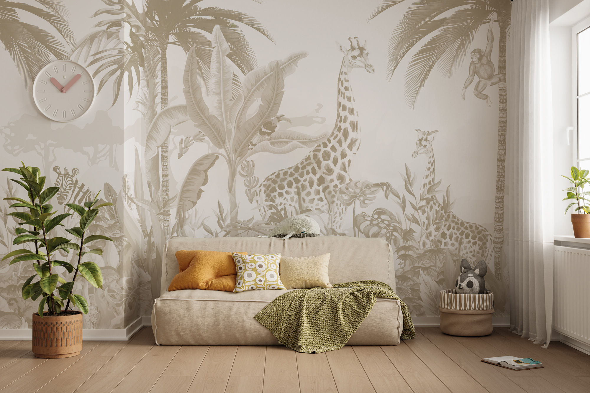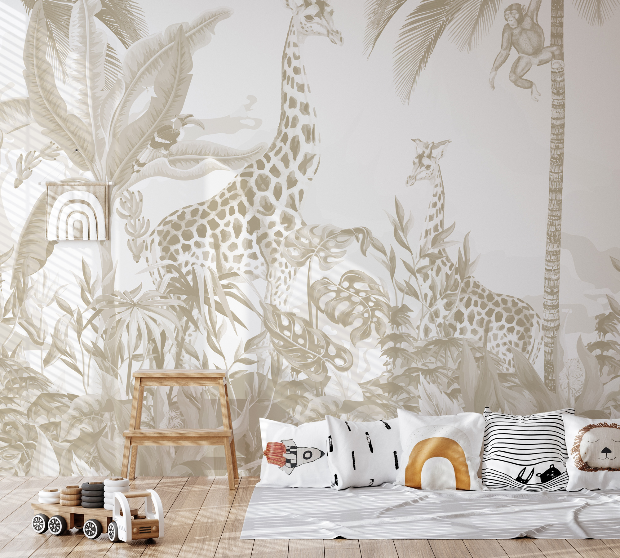 • Tropikal Ormanda Bitkiler ve Hayvanlar Duvar Kağıdı , 100-105cm genişliğinde parçalar halinde üretilmektedir.