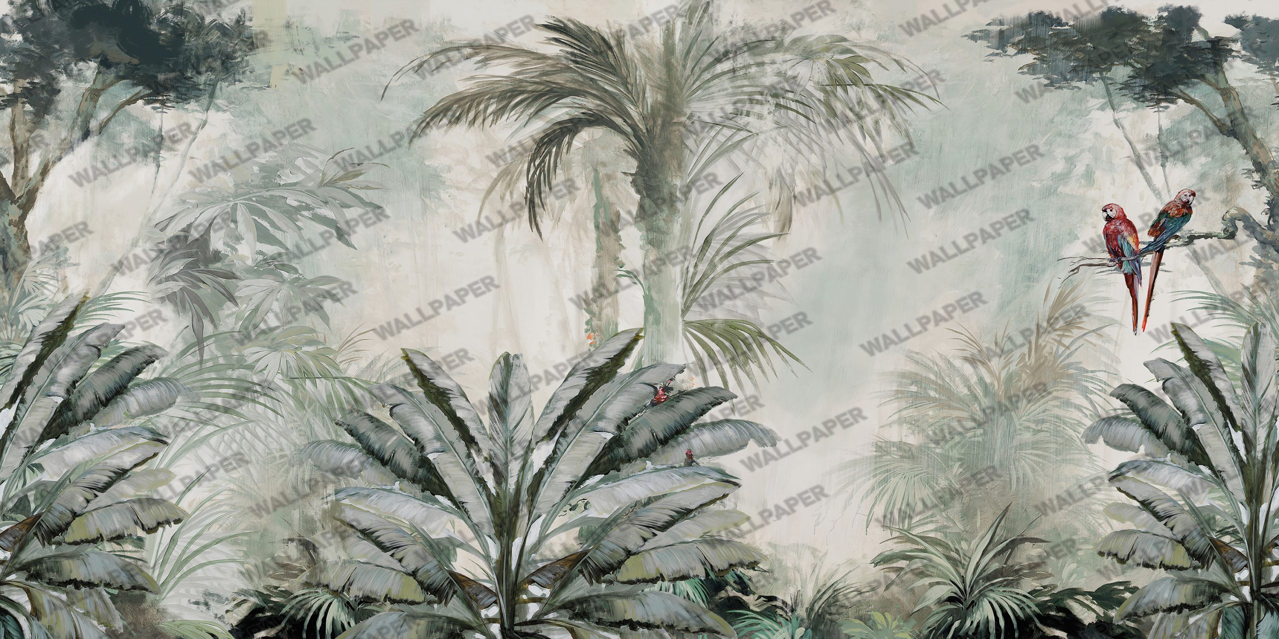 - Tropikal Papağan ve Sisli Orman Duvar Kağıdınız, 100-105cm genişliğinde parçalar halinde üretilmektedir.