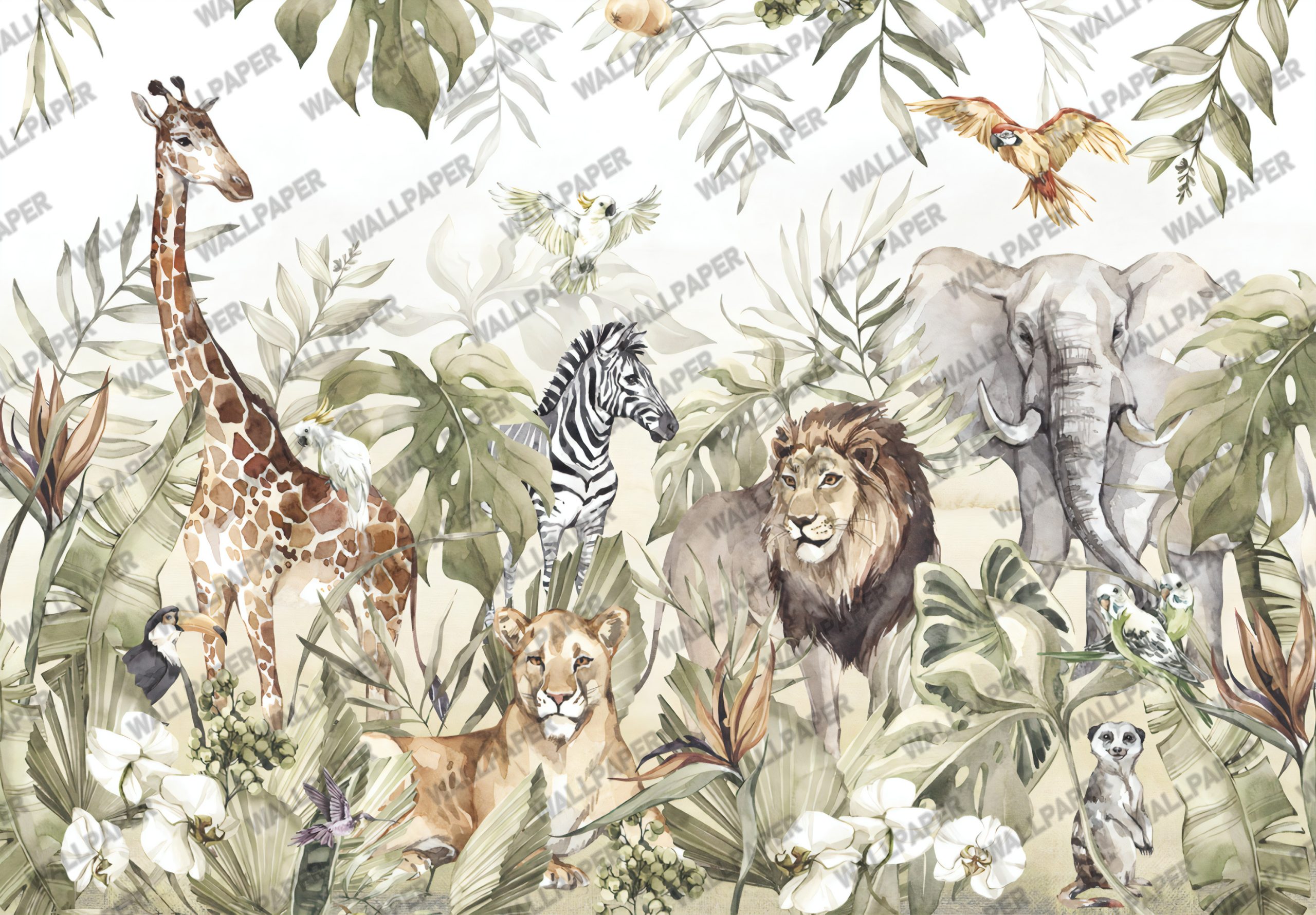 Tropikal Safari Hayvanları Temalı Duvar Kağıdı, en yüksek kalitede (high pass) detay zenginliği gözetilerek, en doğru renklerde ürünün üretimi sağlanır.