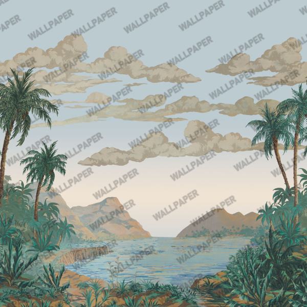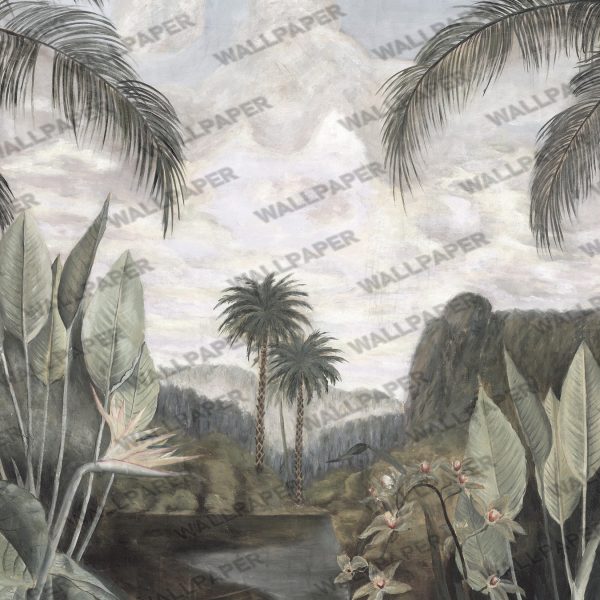Göl İçindeki Tropikal Desenli 3D Duvar Kağıdı