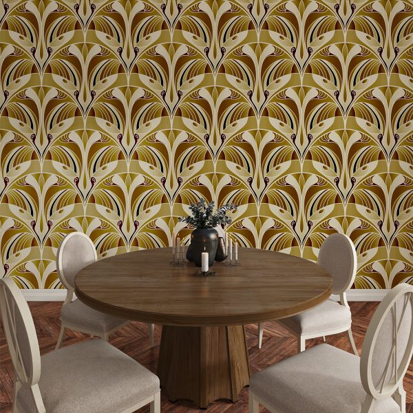 Sarı Tonlarda Art Deco Duvar Kağıdı