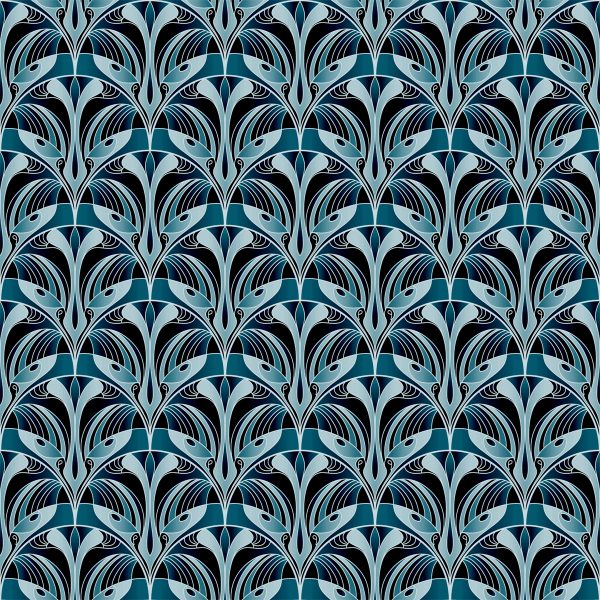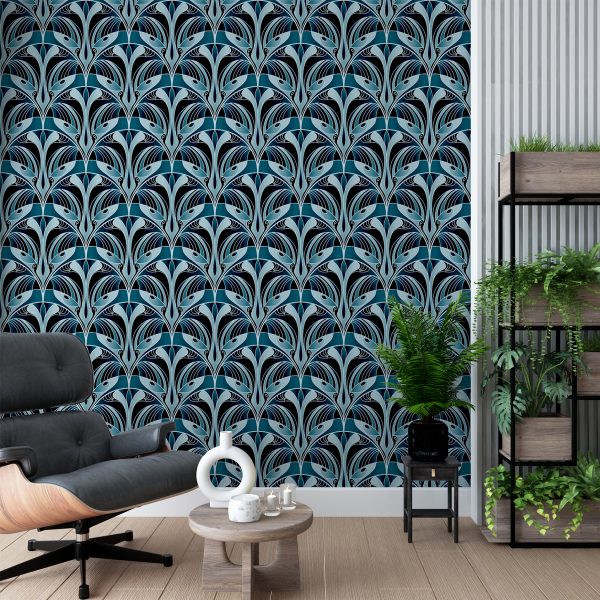 Mavi Tonlarda Art Deco Duvar Kağıdı