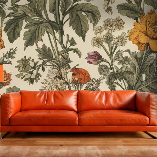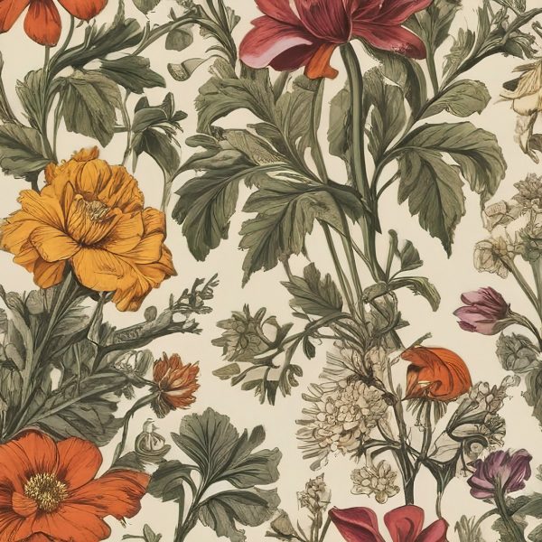 Krem Zeminli Vintage Çiçek Duvar Kağıdı