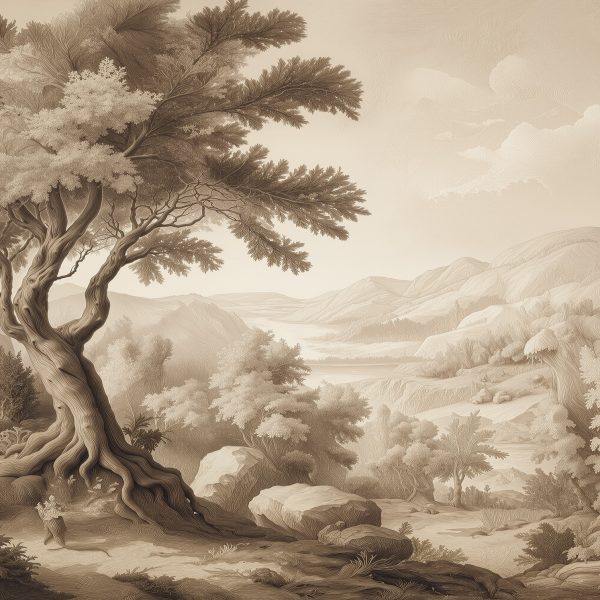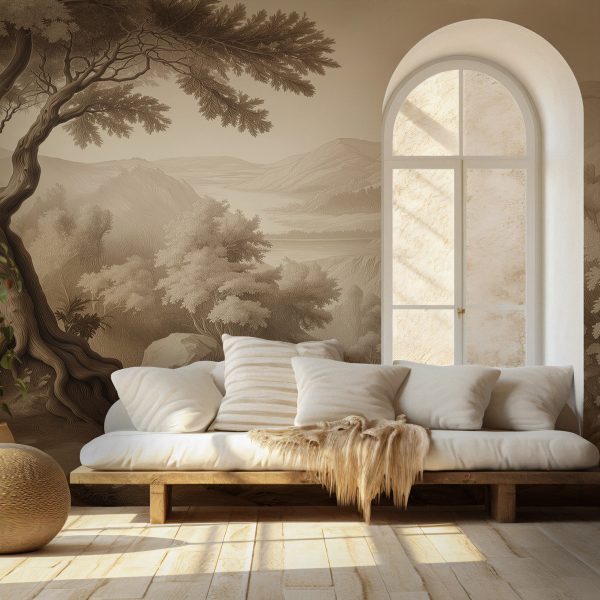 Kahve Tonlarda Vintage Orman Manzarası Duvar Kağıdı