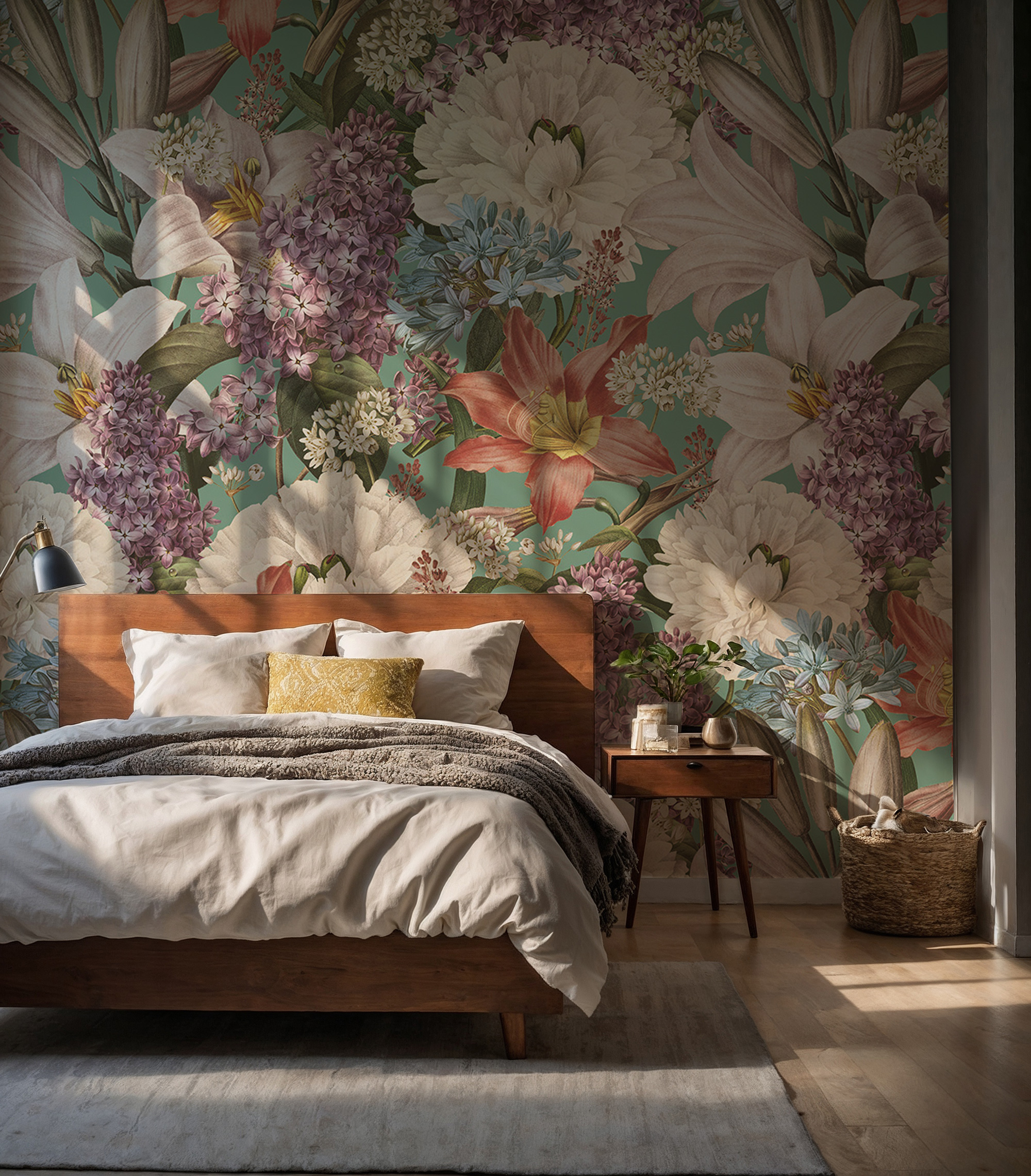 Vintage Botanik Çiçek Desenli Duvar Kağıdı üretimi, uygulanmasını isteyeceğiniz boyut ve konumuna uygun olarak talepleriniz doğrultusunda size özel imal edilir.