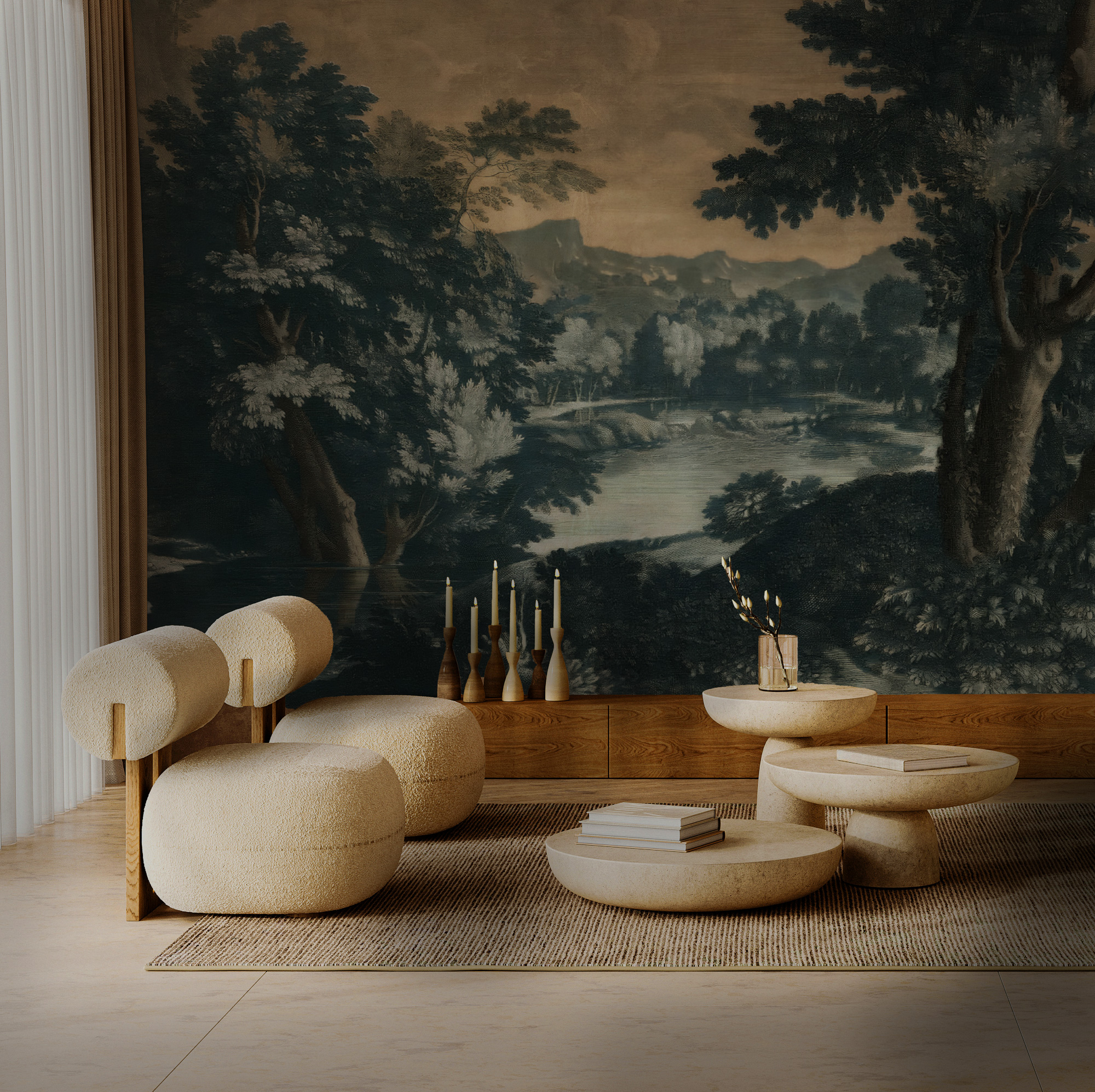 Vintage Orman ve Göl Manzaralı Duvar Kağıdı Ürün Bilgisi