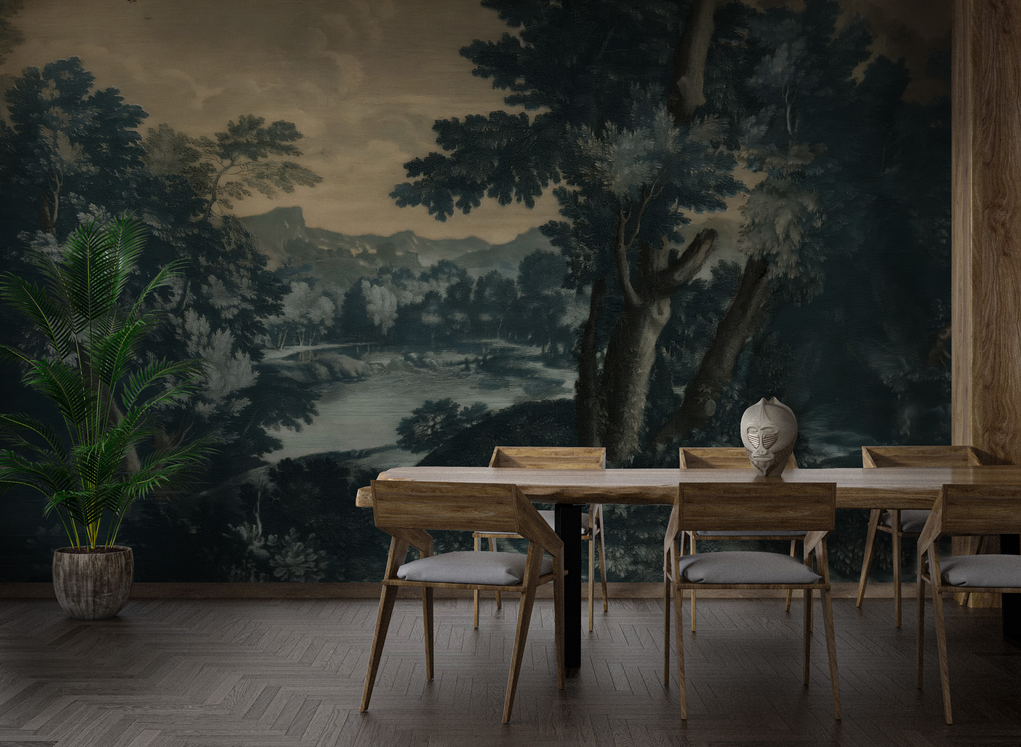 Vintage Orman ve Göl Manzaralı Duvar Kağıdı üretimi, uygulanmasını isteyeceğiniz boyut ve konumuna uygun olarak talepleriniz doğrultusunda size özel imal edilir.