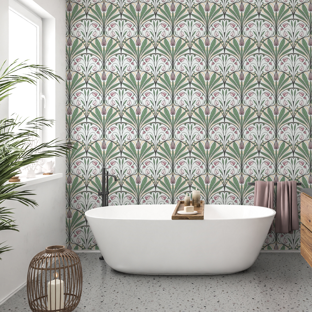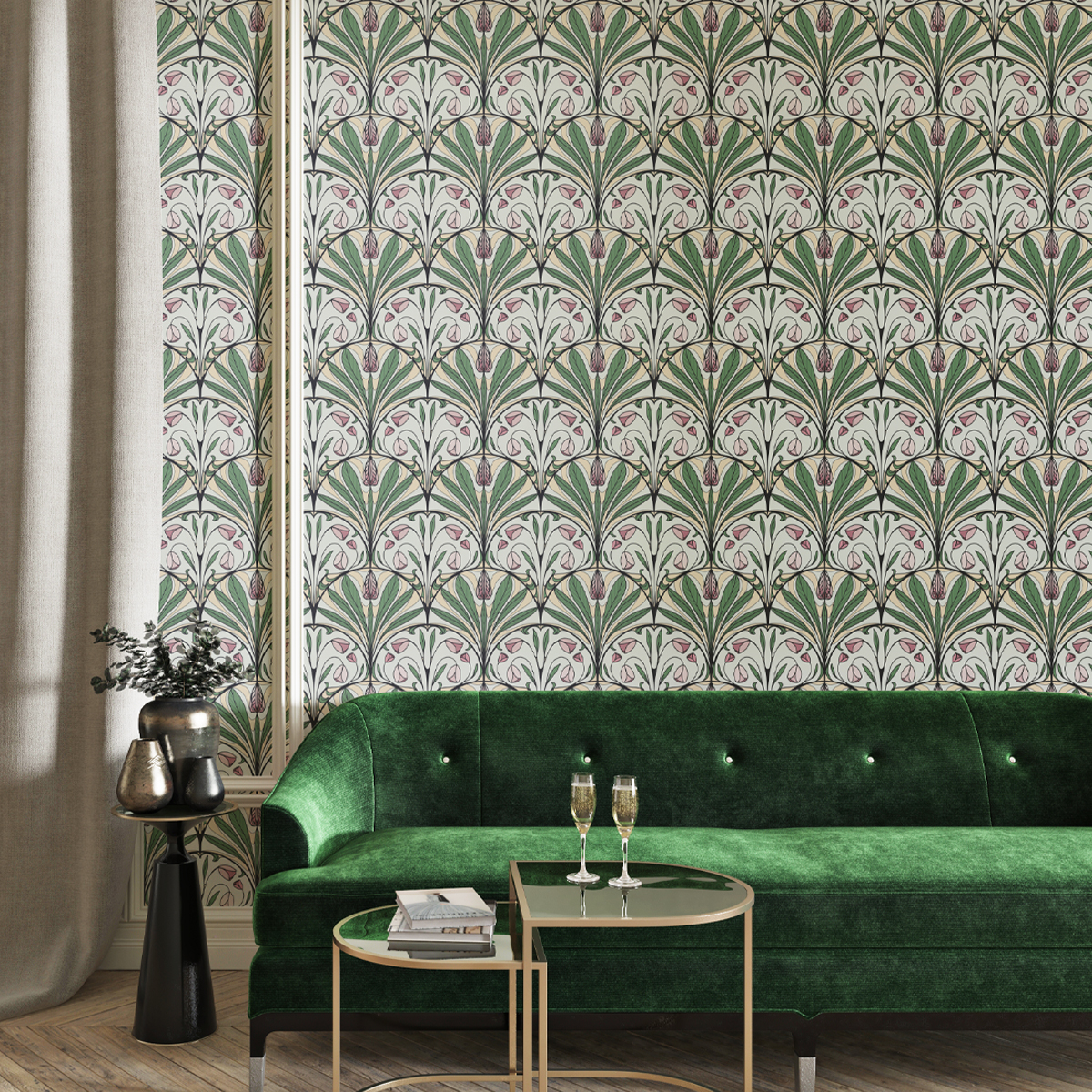 Yeşil Pastel Retro Çiçek Desenli Duvar Kağıdı üretimi , uygulanmasını isteyeceğiniz boyut ve konumuna uygun olarak talepleriniz doğrultusunda size özel imal edilir.