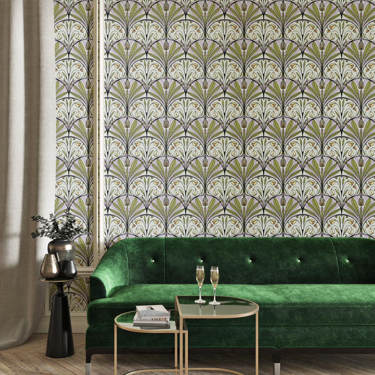 Yeşil Retro Çiçek Desenli Duvar Kağıdı üretimi , uygulanmasını isteyeceğiniz boyut ve konumuna uygun olarak talepleriniz doğrultusunda size özel imal edilir.