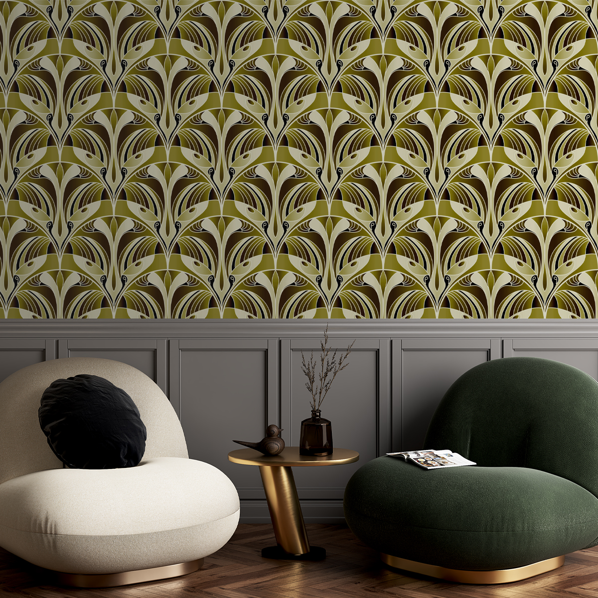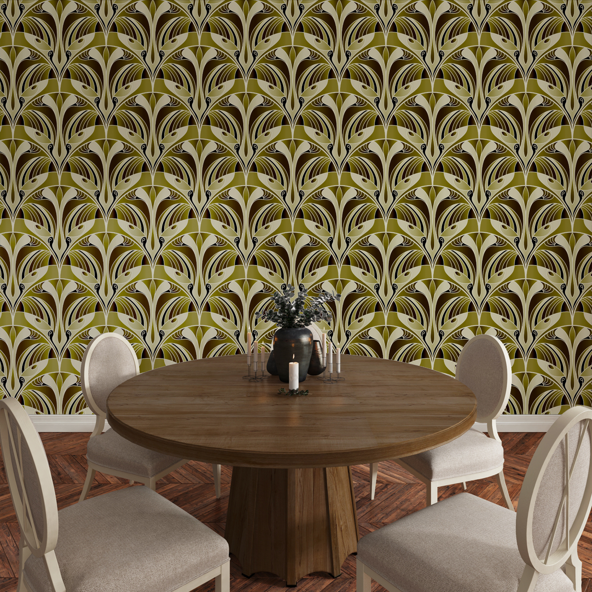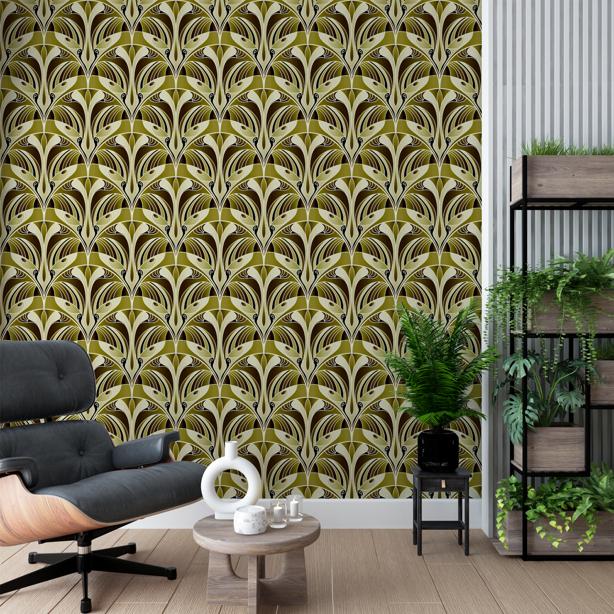 Yeşil Tonlarda Art Deco Duvar Kağıdı üretimi , uygulanmasını isteyeceğiniz boyut ve konumuna uygun olarak talepleriniz doğrultusunda size özel imal edilir.