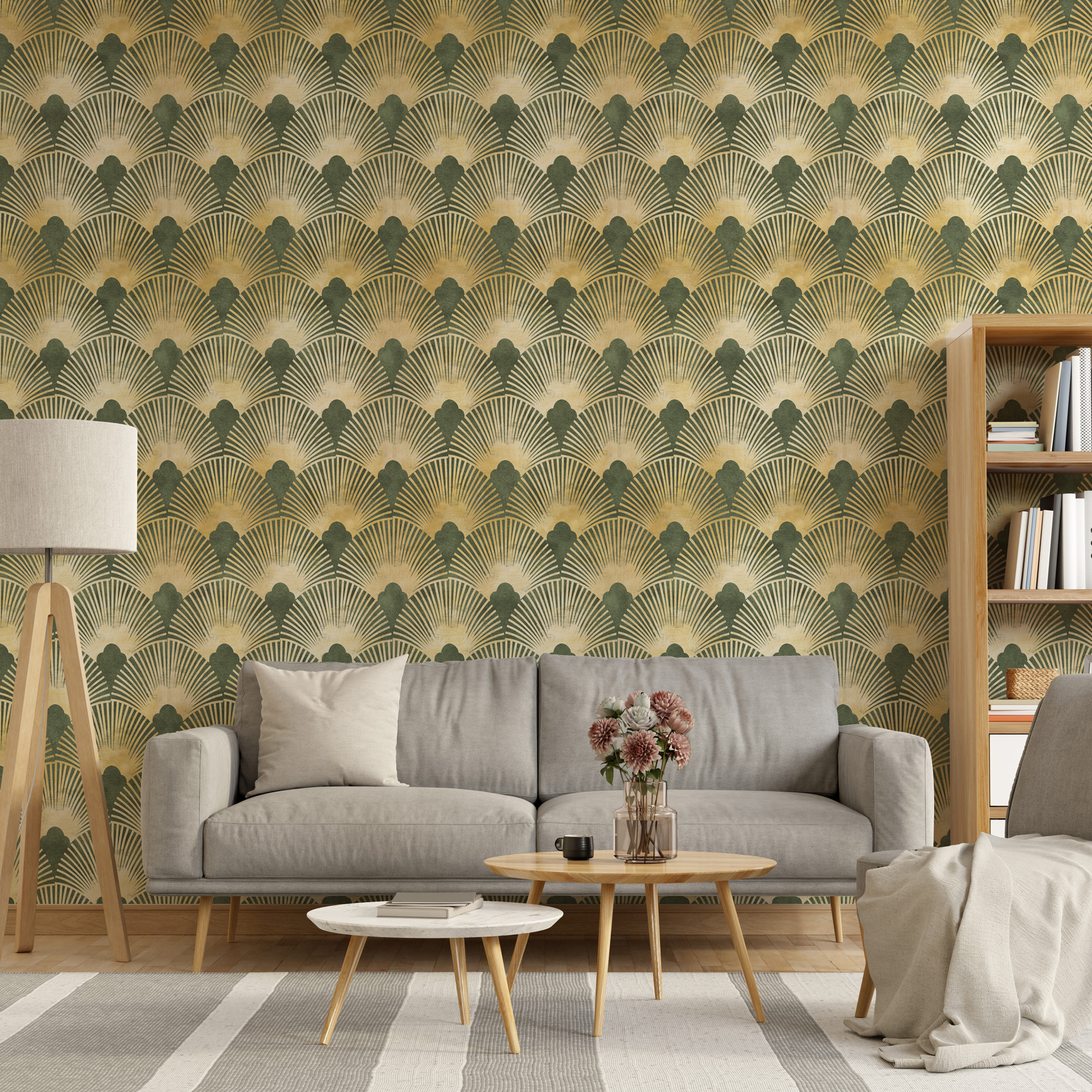 Yeşil ve Altın Rengi Geometrik Desenli Duvar Kağıdı , uygulanmasını isteyeceğiniz boyut ve konumuna uygun olarak talepleriniz doğrultusunda size özel imal edilir.