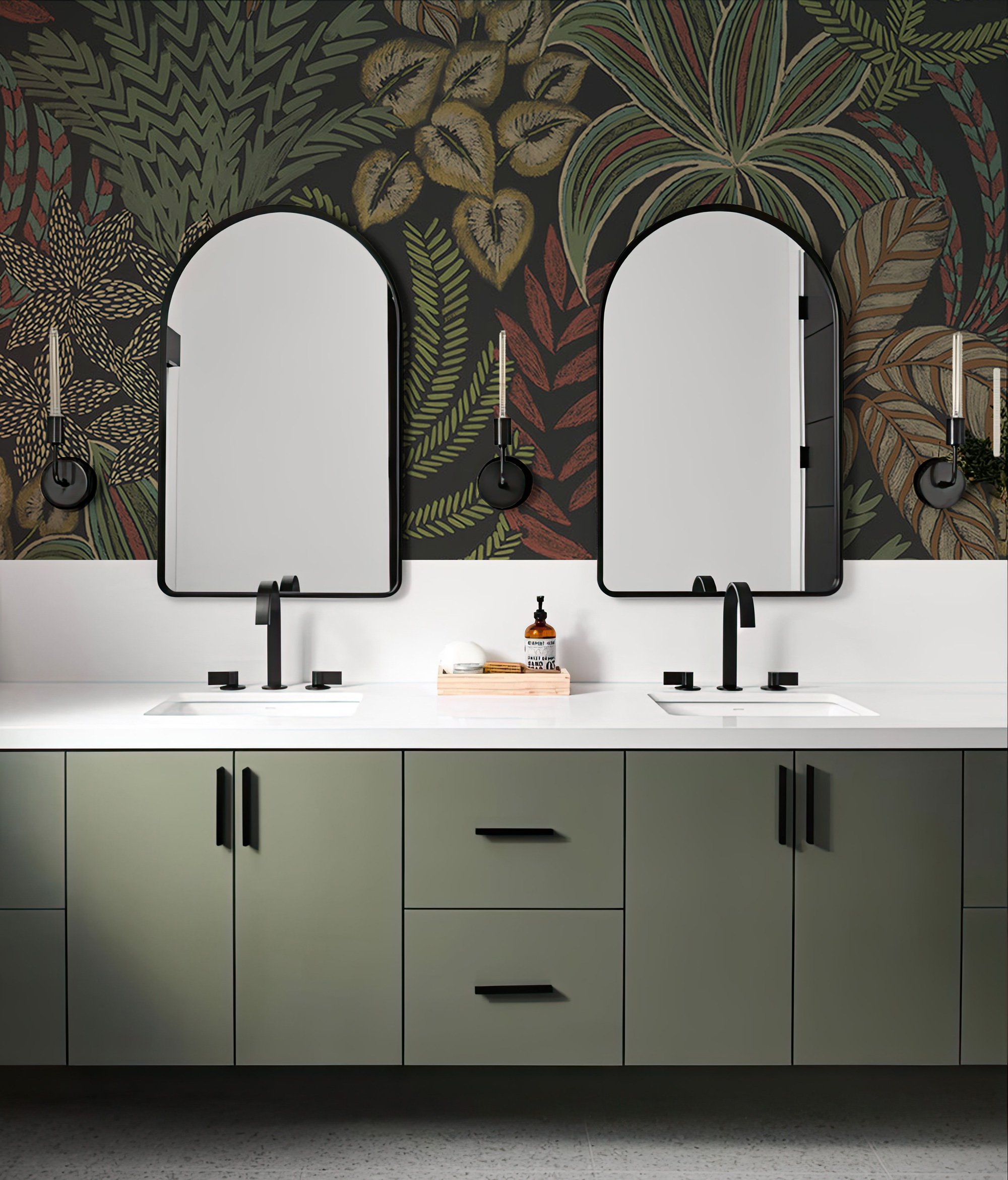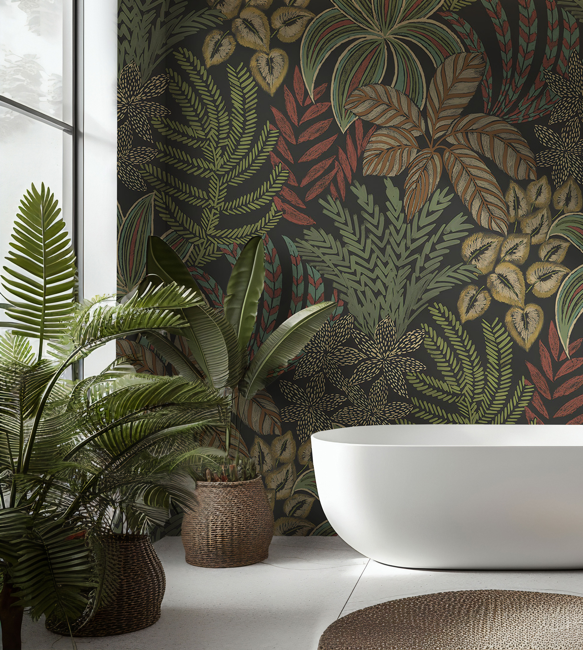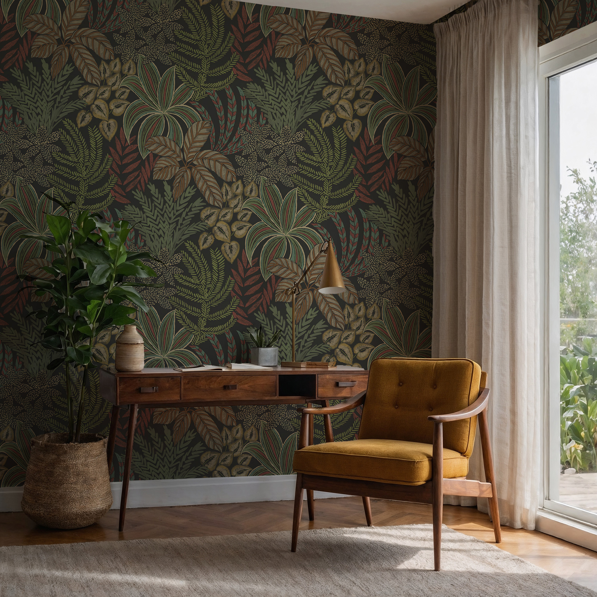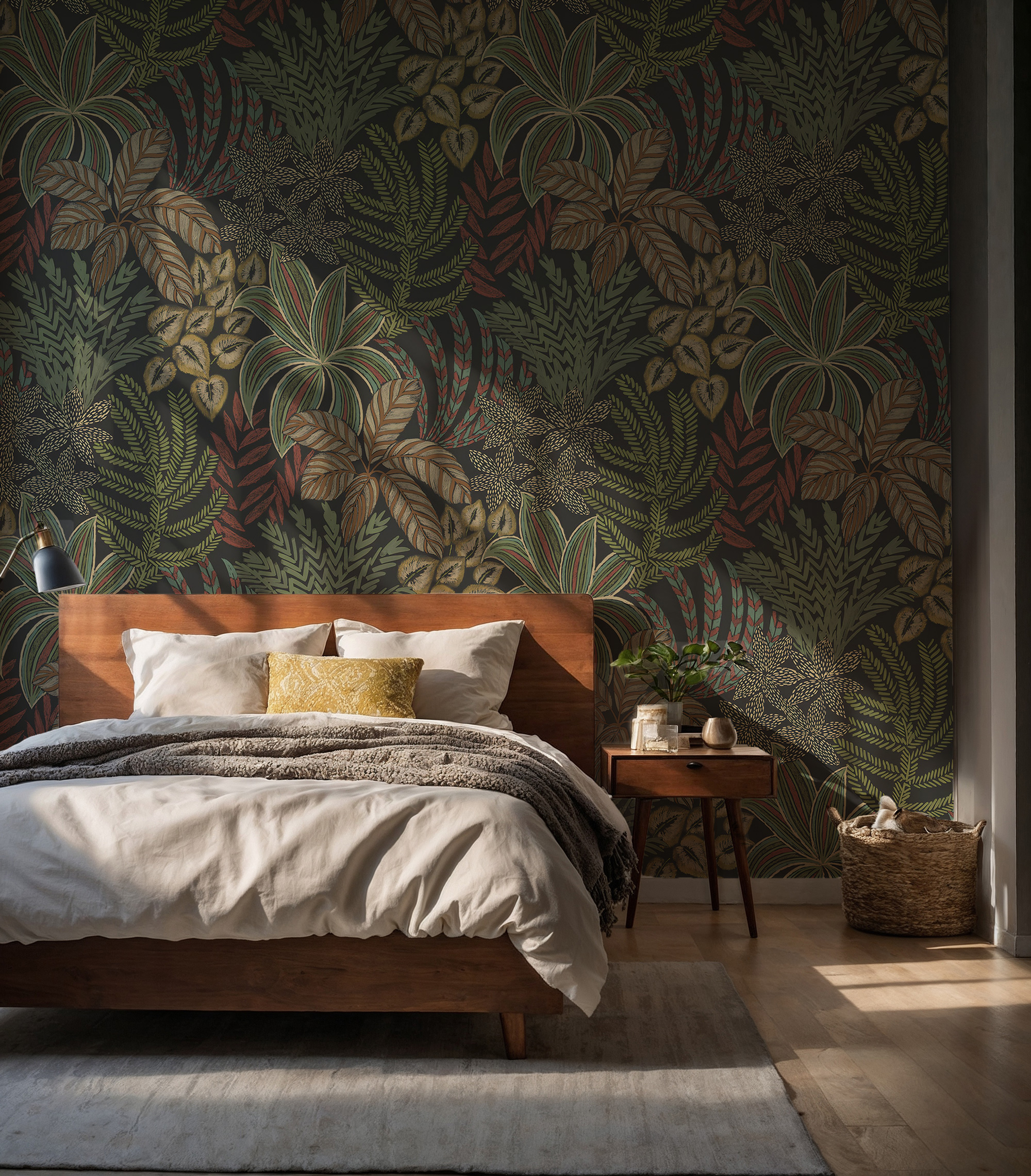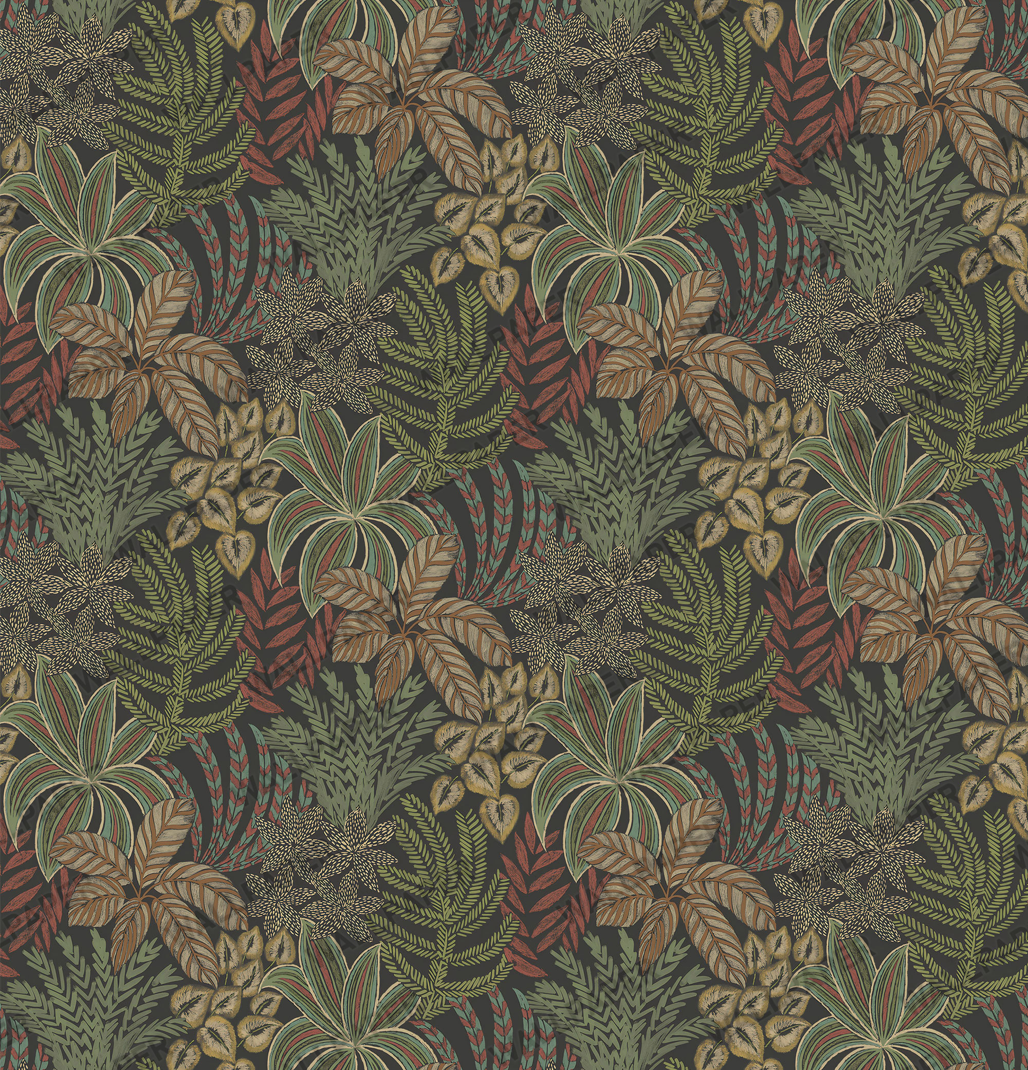 Yeşil Zemin Tropikal Yapraklar Duvar Kağıdı üretimi, uygulanmasını isteyeceğiniz boyut ve konumuna uygun olarak talepleriniz doğrultusunda size özel imal edilir.