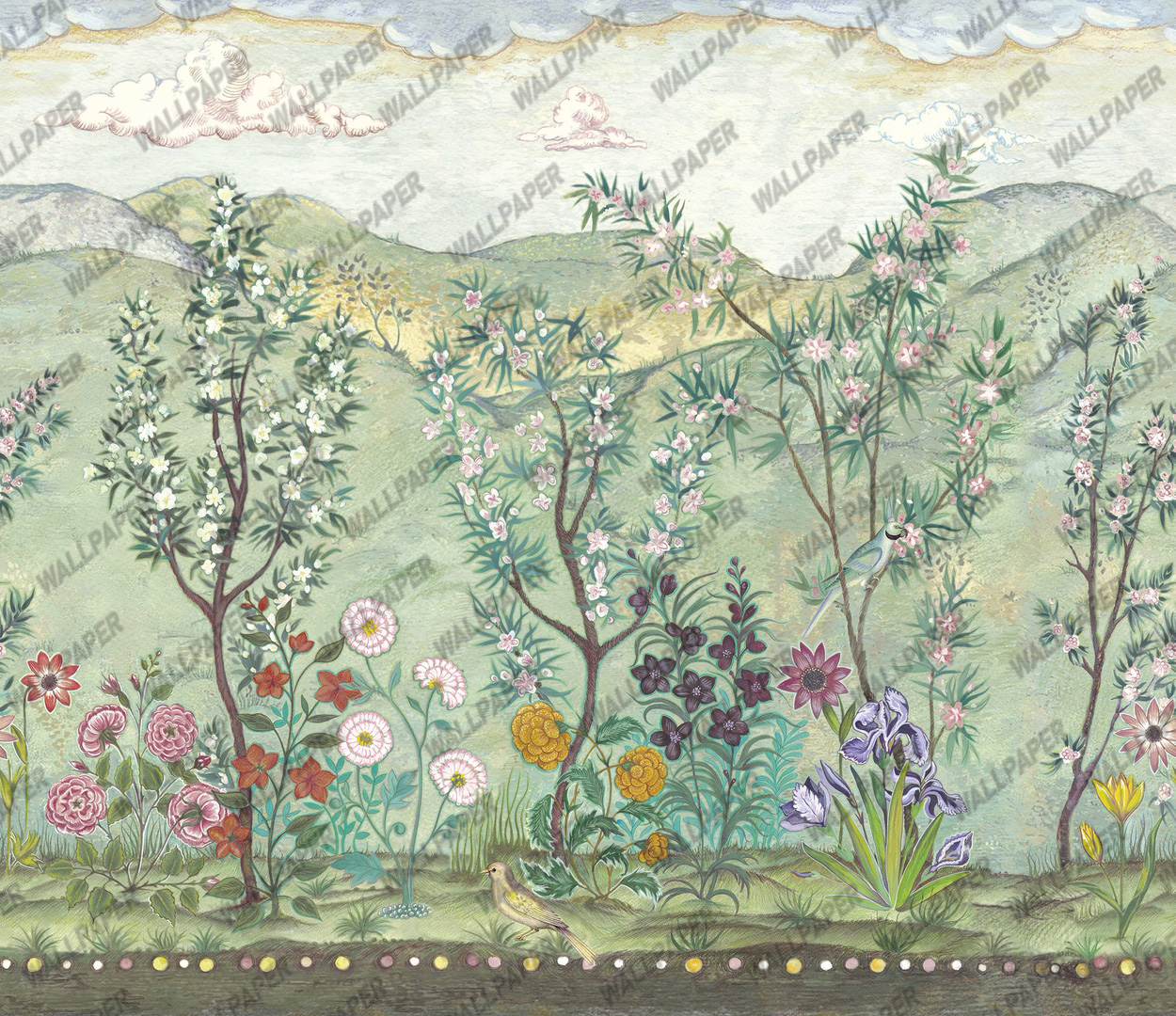 - Yeşil Zeminde Sarmaşık Gülleri Duvar Kağıdı , 100-105cm genişliğinde parçalar halinde üretilmektedir.