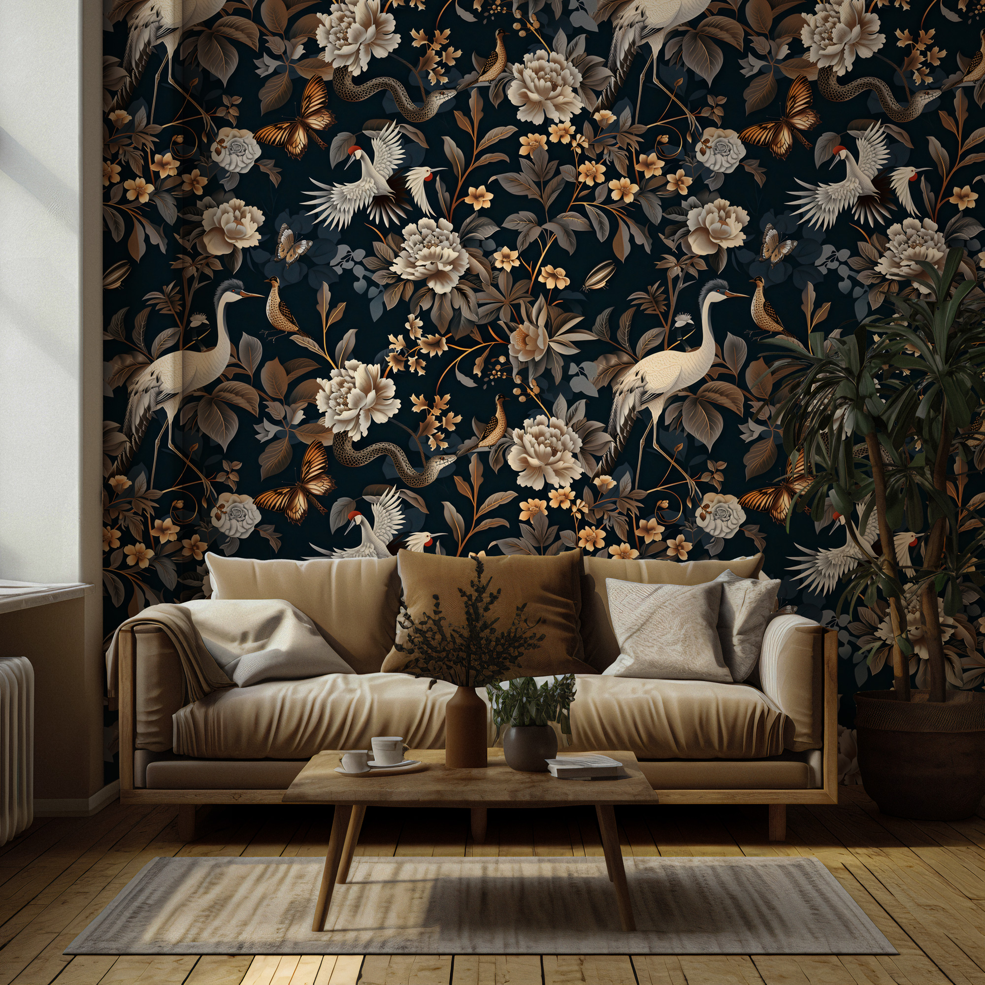 Yılan Detaylı Kuş ve Çiçek Duvar Kağıdı Ürün Bilgisi