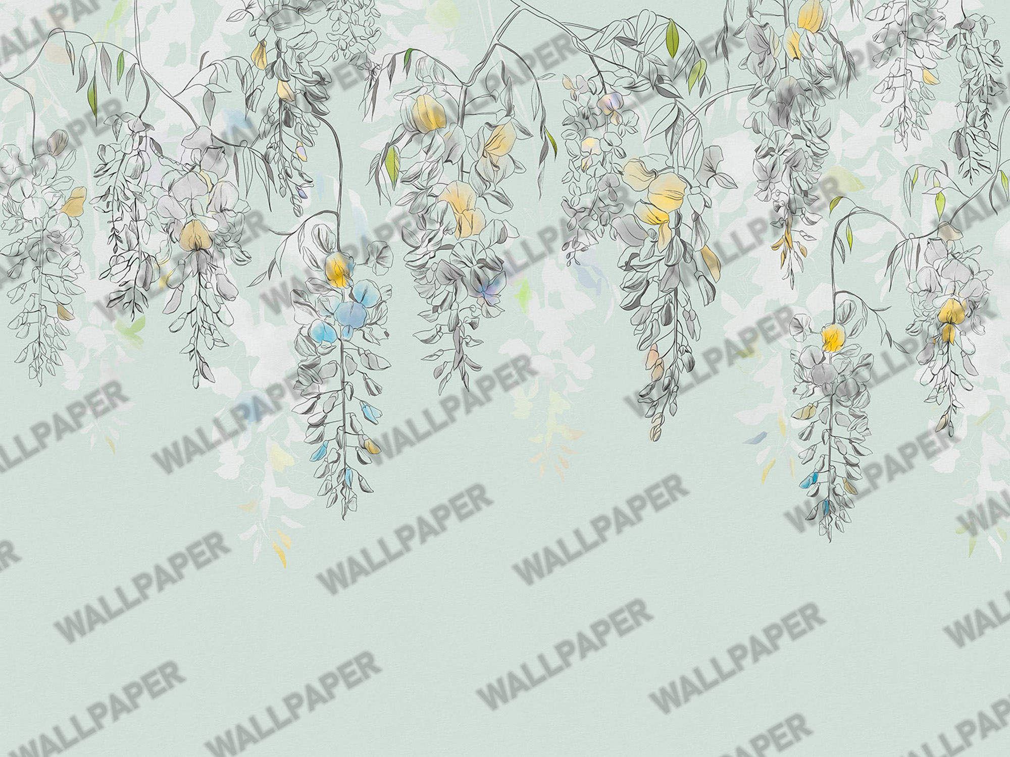 Yukarıdan Sarkan Salkım Çiçekler Duvar Kağıdı , uygulanmasını isteyeceğiniz boyut ve konumuna uygun olarak talepleriniz doğrultusunda size özel imal edilir.