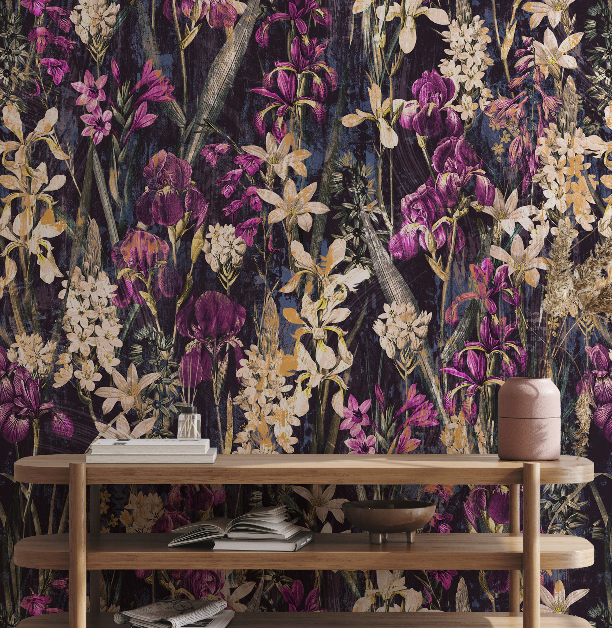 Zambak Desenli Koyu Zemin Duvar Kağıdı üretimi, uygulanmasını isteyeceğiniz boyut ve konumuna uygun olarak talepleriniz doğrultusunda size özel imal edilir.